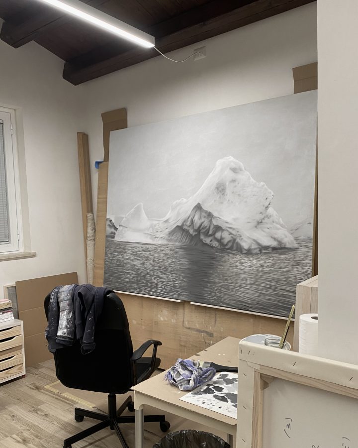 Ettore Pinelli’s research into the relationship between image and violence finds a symbolic–naturalistic extension in a series of works in which nature becomes a metaphor for precariousness and transformation. The subjects—melting icebergs, evanescent storms, and forests in flames—emerge from suspended surfaces, poised between appearance and dissolution. Stripped of any narrative dimension, these natural elements evoke a latent violence inscribed in processes of change and erasure.