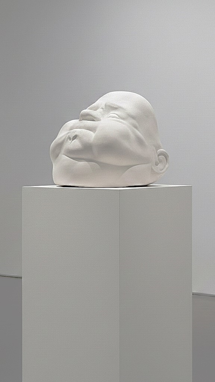 He does not limit himself to a celebratory portrait; he creates an almost alien anatomical deformation, where the flesh stretches to the point of losing its biological connotation and becoming a "sounding board." In keeping with Fontana's research, the act of sound ceases to be an ephemeral acoustic phenomenon and becomes a solid volume, an internal pressure that presses against the confines of matter.