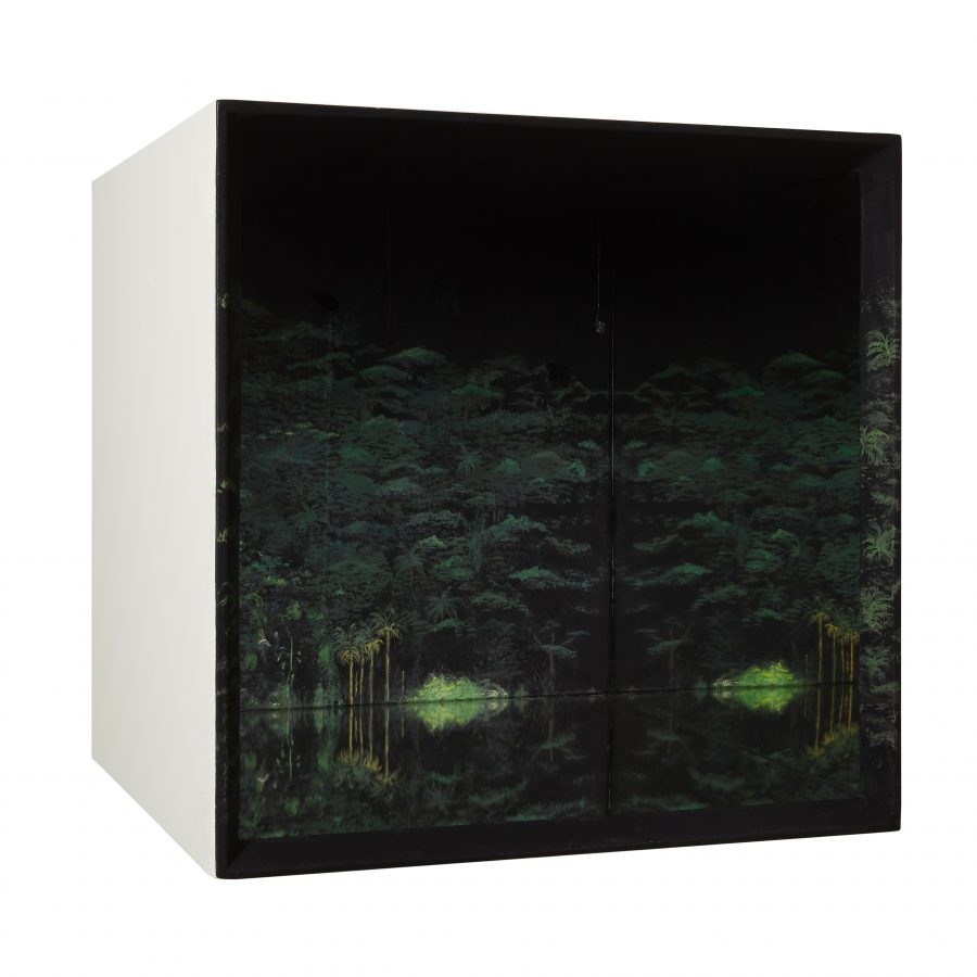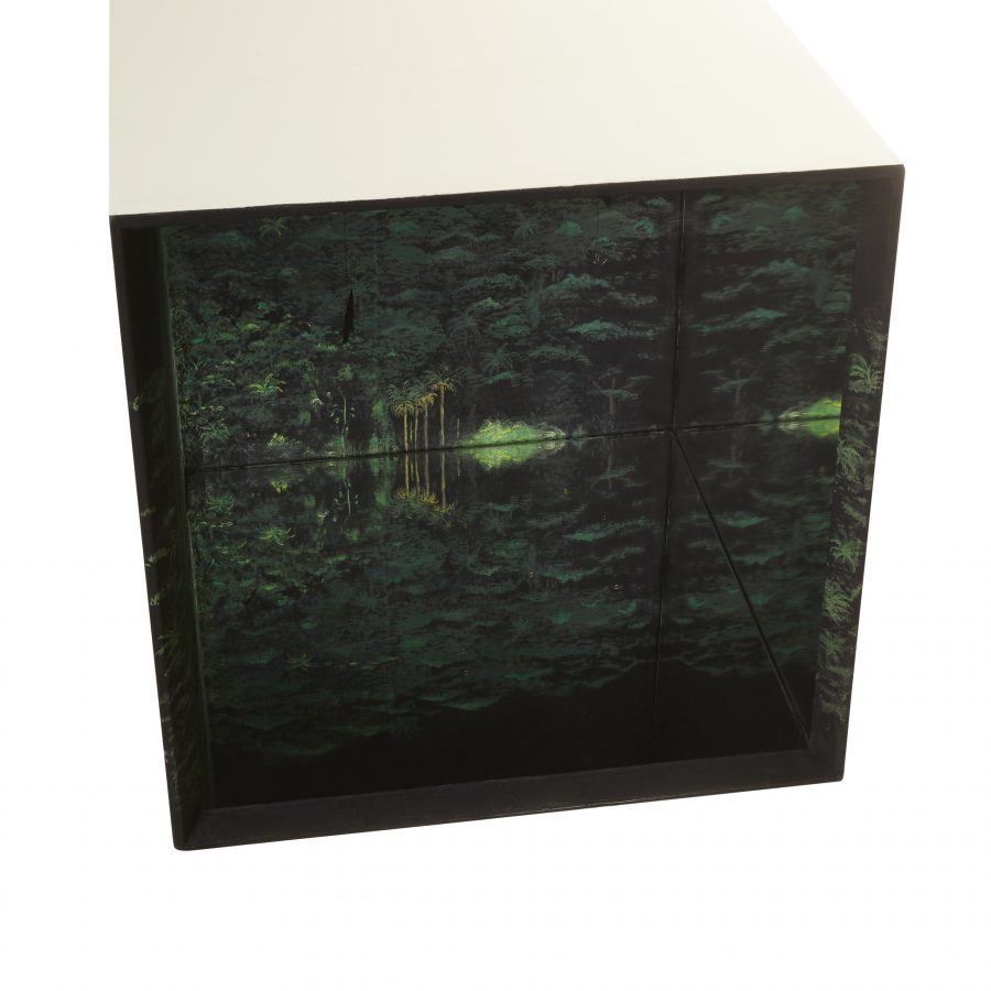 acrylic, watercolor, chalk and acrylic pastes on polystyrene and styrofoam,