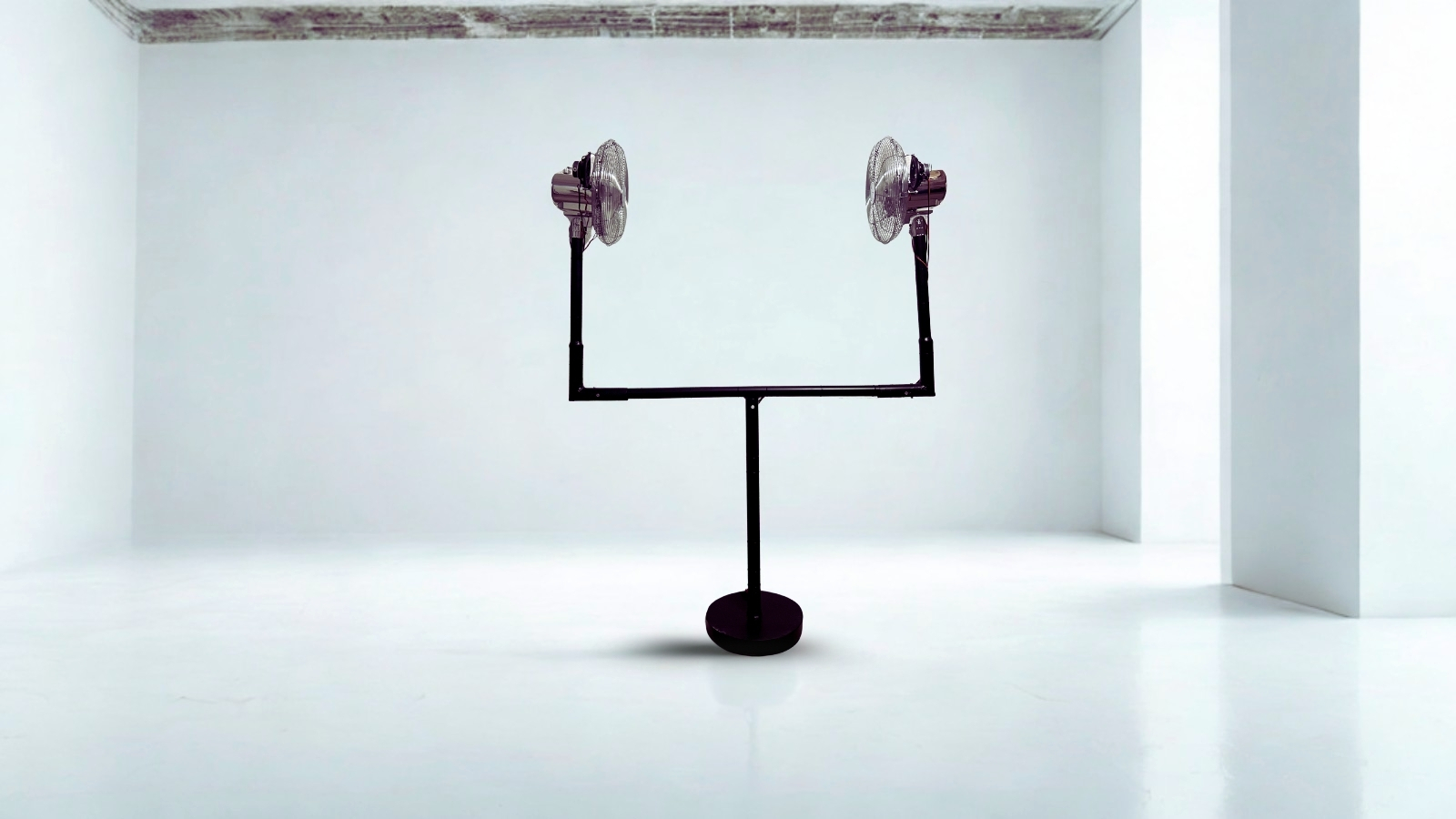 Sound installation. Mixed media using fans, woofer, amplifier, and iron. Unique work. Iron support.