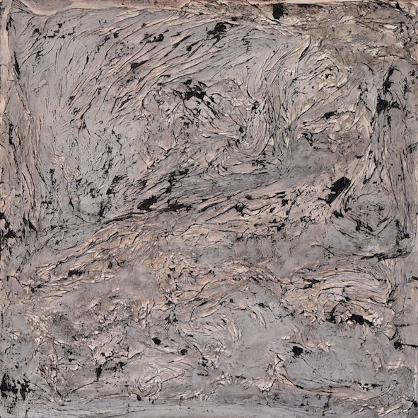 RECYCLED PAPER, INK AND ACRYLIC ON CANVAS