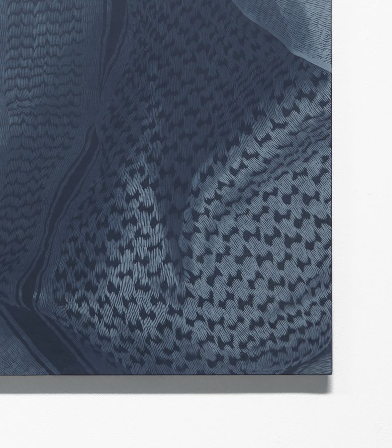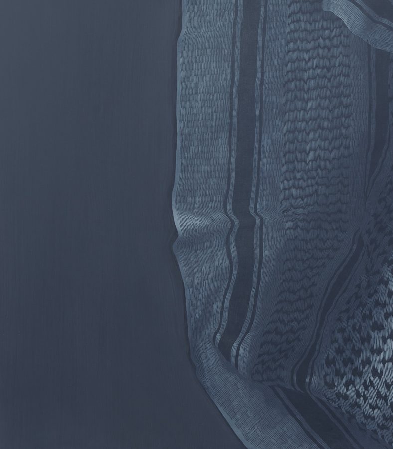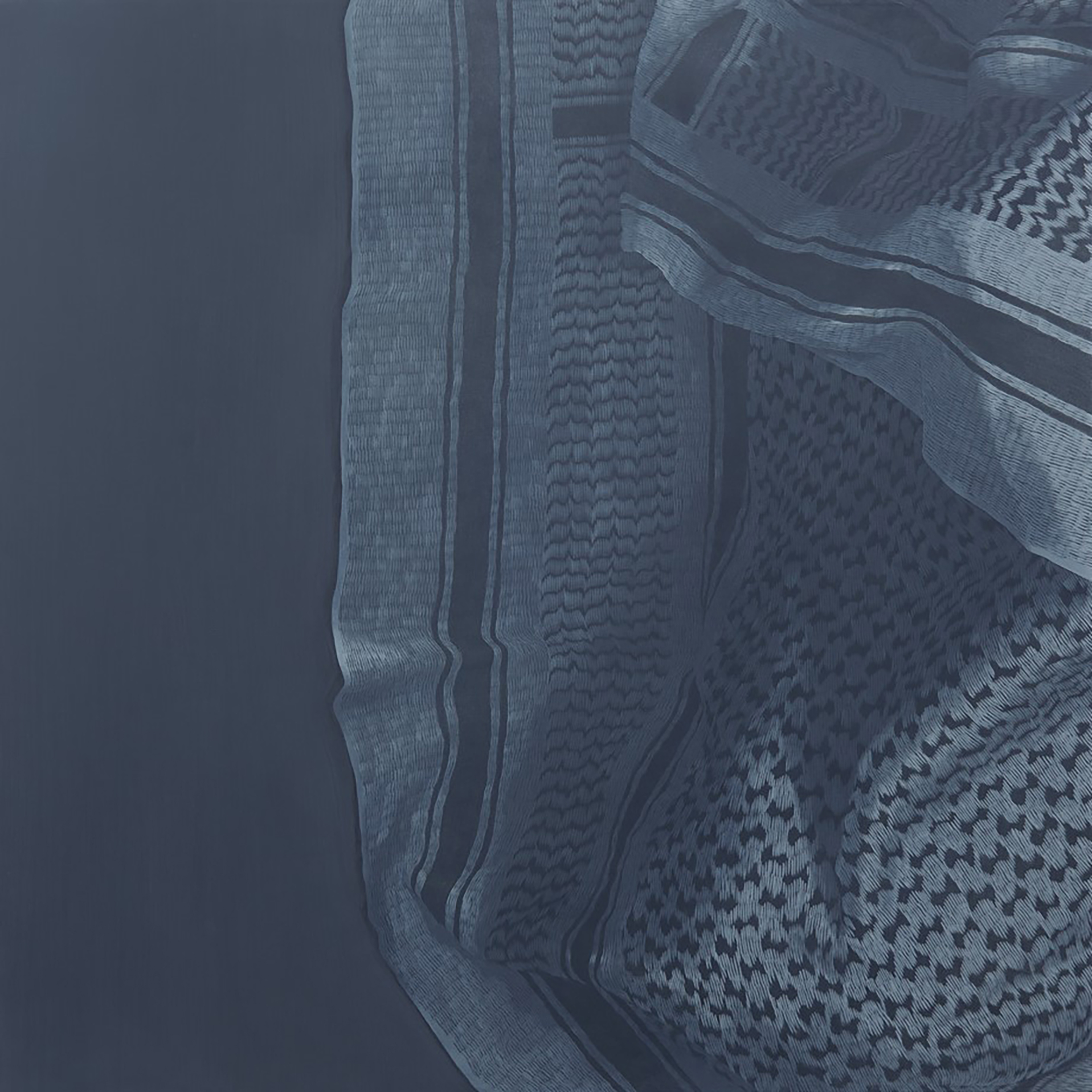 work corpo tessuto _ kefiah payne category Painting subject Political / Social tags base 90 cm height 90 cm depth 2 cm year 2025 0 likes 0 comments