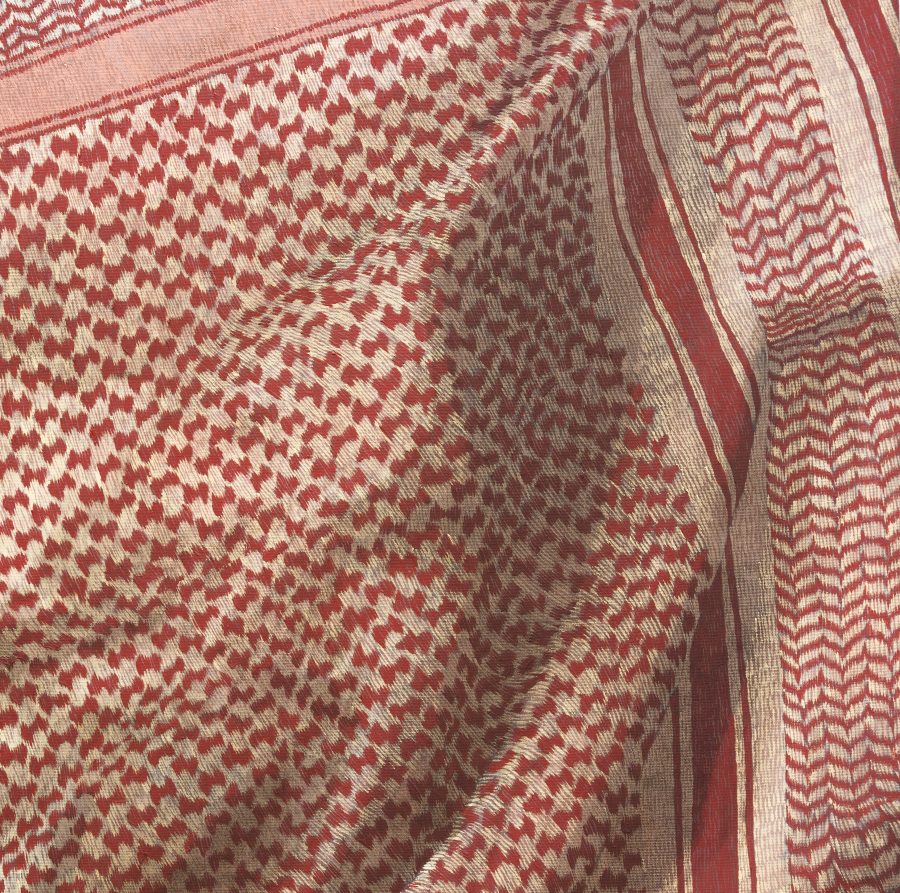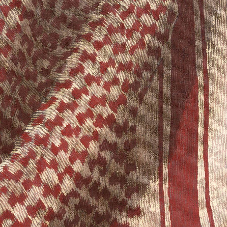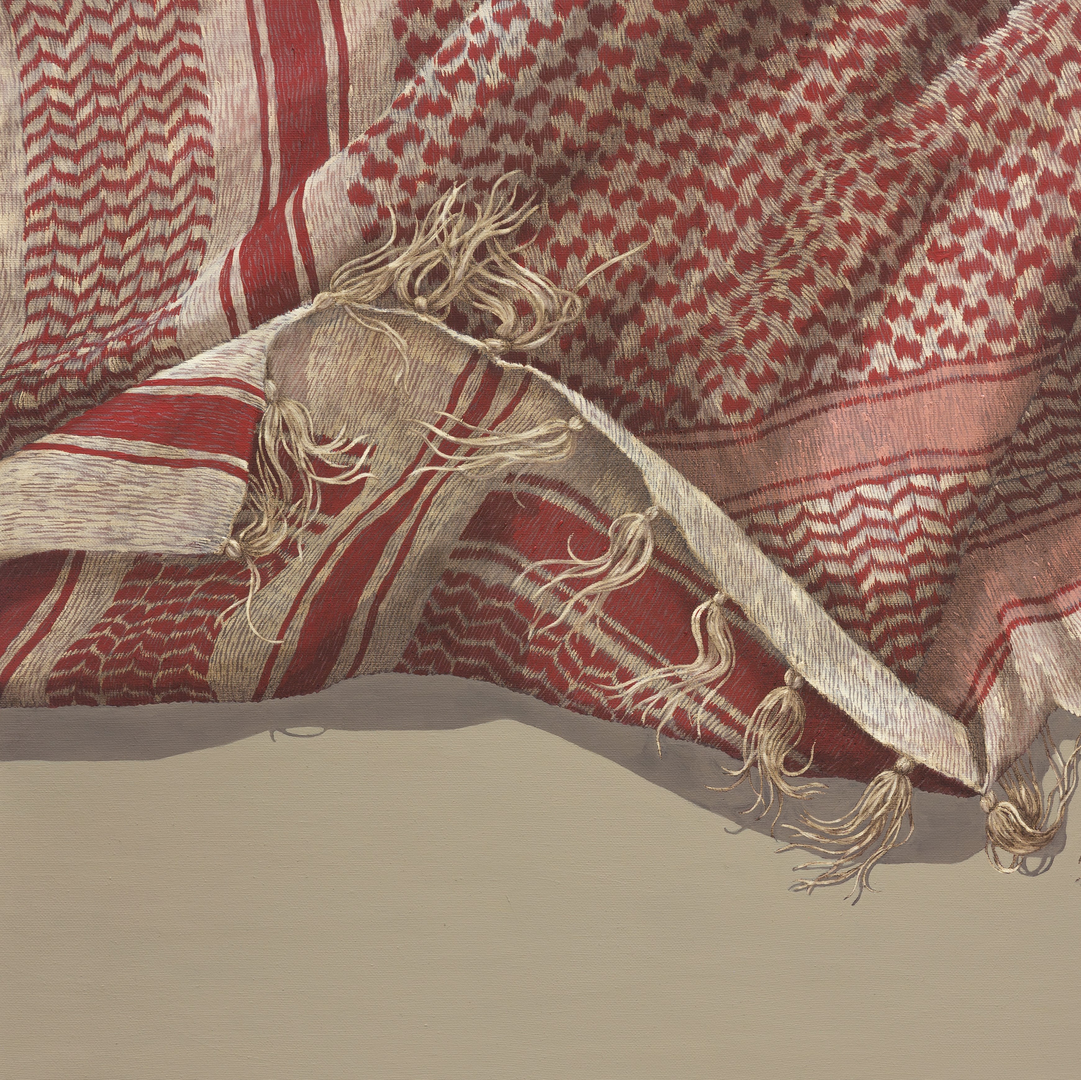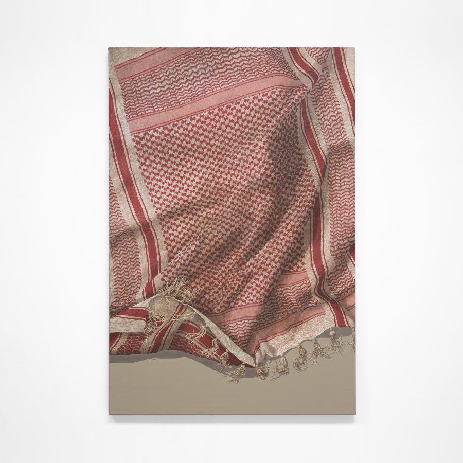 work corpo tessuto _ Kefiah rossa category Painting subject Political / Social tags base 80 cm height 120 cm depth 3 cm year 2024 0 likes 0 comments