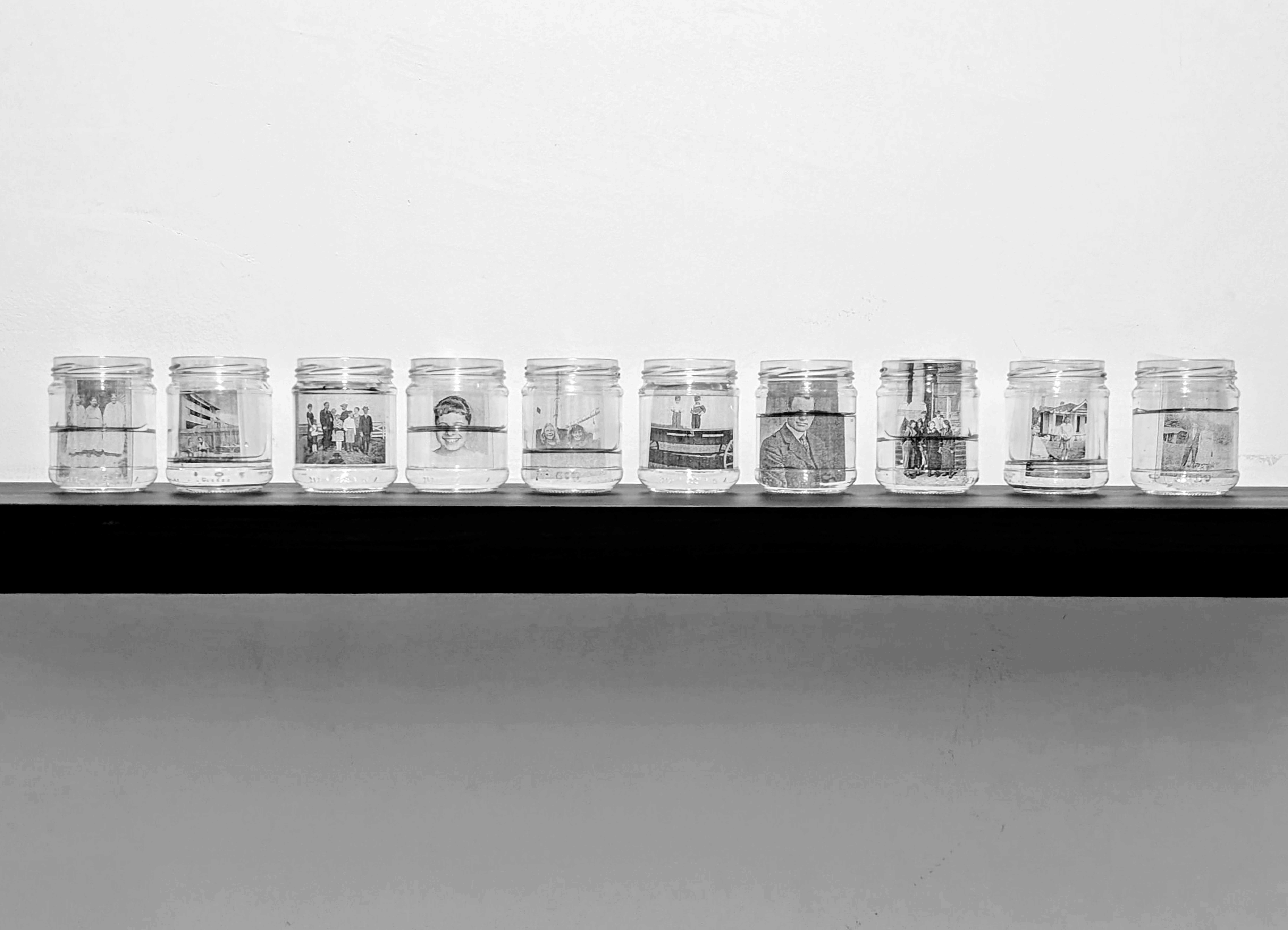 The work evokes the River Lethe as a symbol of oblivion: photographs of strangers submerged in water suggest the dissolution of identity and the fragility of memory.