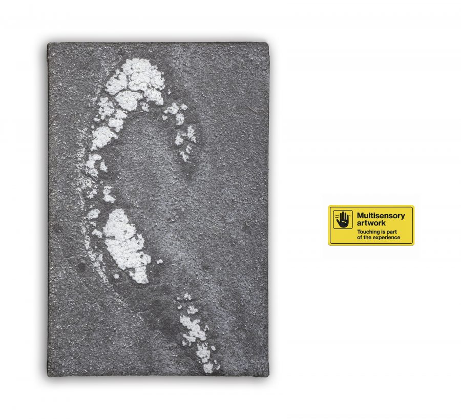 Printed on bituminous support, these photographic works are not merely meant to be observed; they invite the public to touch them, to perceive their materiality, refining the experience of awareness through the sense of touch. Due to their composition and uniqueness, these works can be considered true sculptures to be hung.