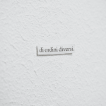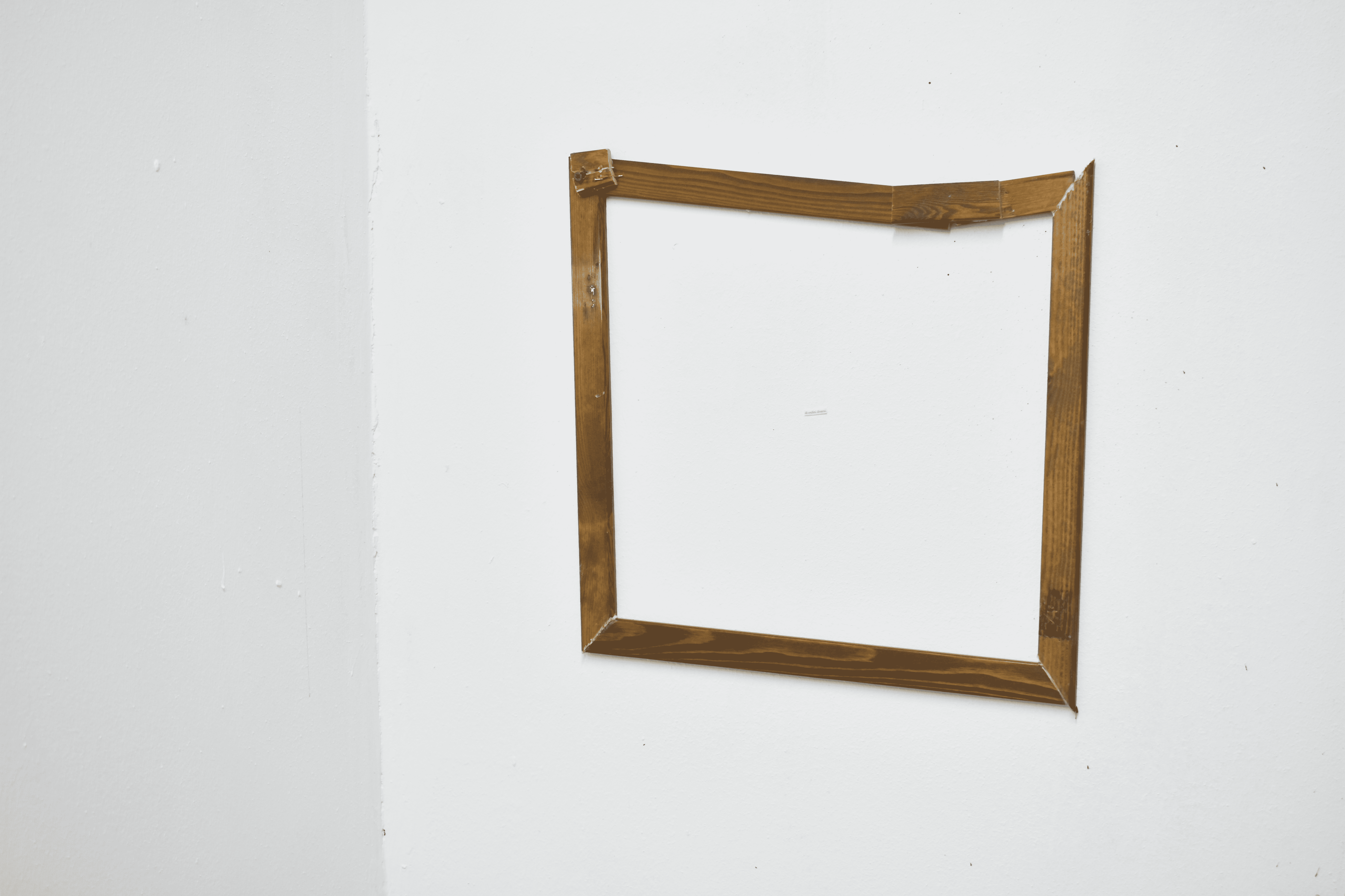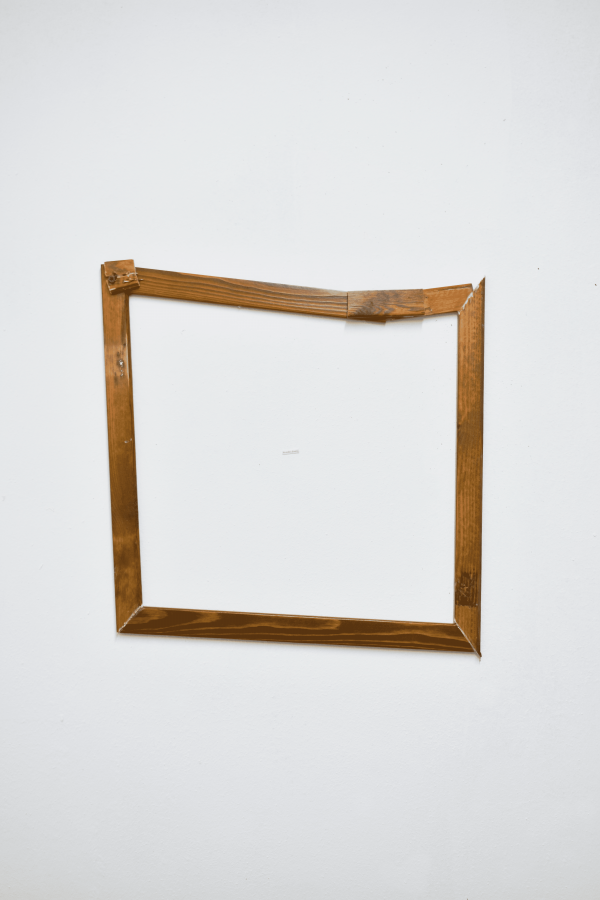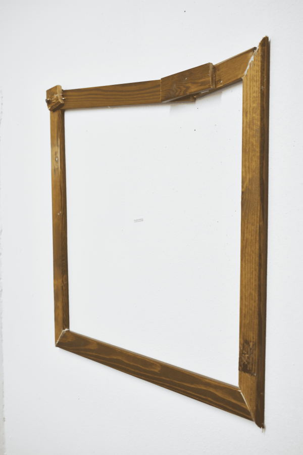 The deformed frame, devoid of an image, stages an interruption — a shift that opens space to new possibilities of meaning. As suggested by the 2019 Venice Biennale, *May You Live in Interesting Times*, it invites us to distrust certainties, to grasp contradictory perspectives, to reread reality. Here, emptiness is not absence but a space open to multiplicity. The label in the center does not describe, but asserts. The only clue is a formula: *of different orders.*