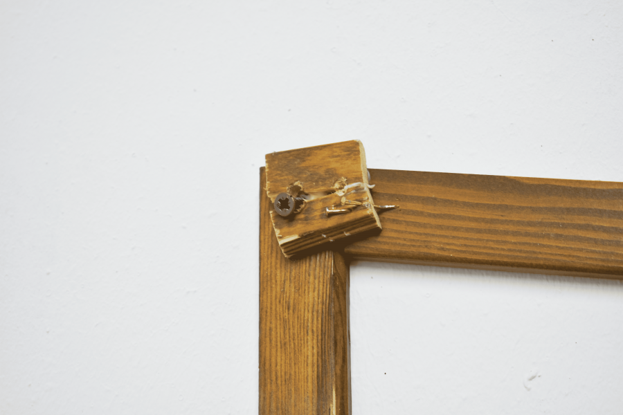 Installation composed of: wood, nails, glue, and paper.