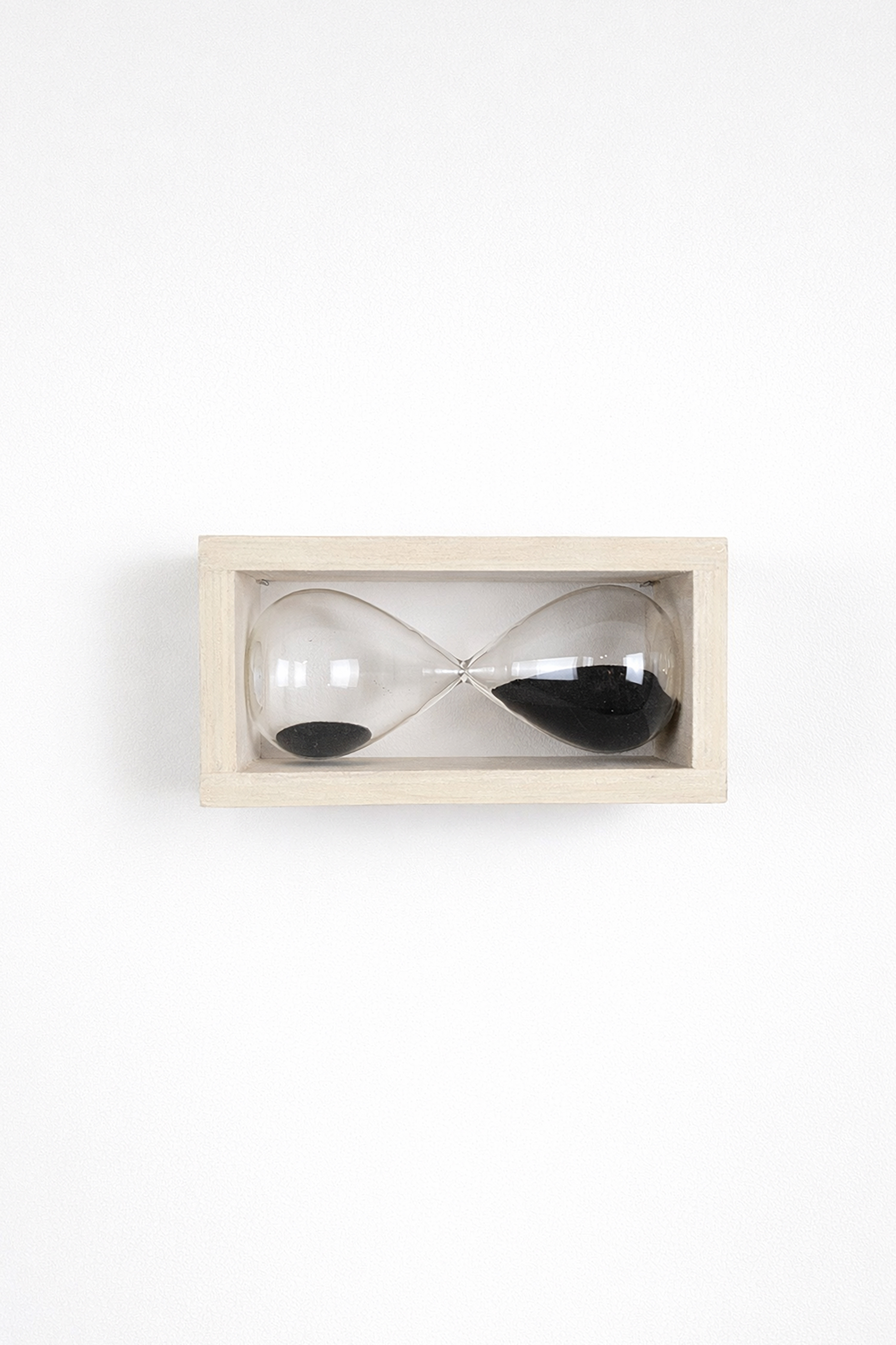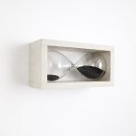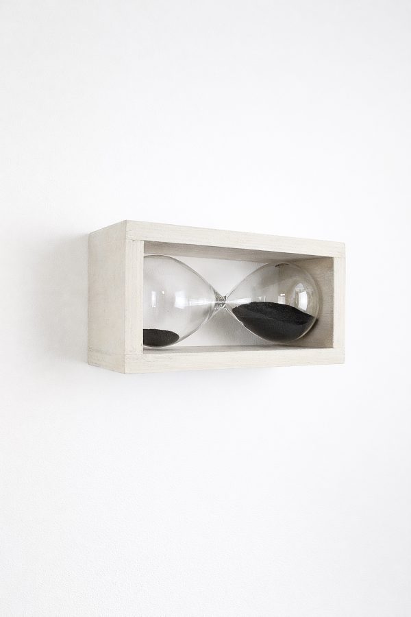 The hourglass, a tool used to measure the passage of time, is turned upside down as if to emphasize the interruption of temporal flow in an eternal present, thus forming the mathematical symbol of infinity: ∞