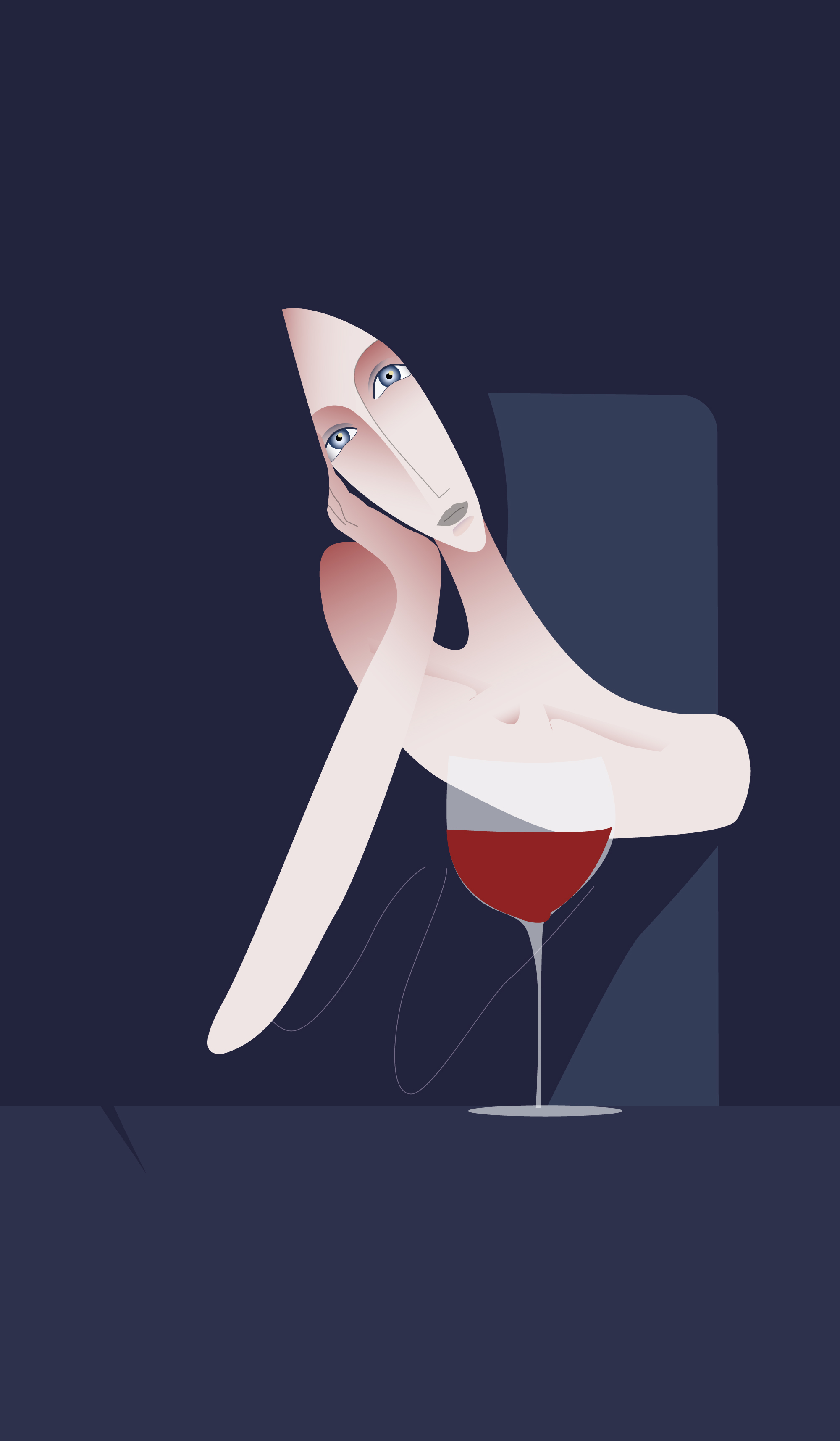 This work opens the Glass triptych. The figure looks at the glass as a metaphor for emotions being held back. It is a full, still container that gathers everything she does not let out. Her closed posture and distant gaze mark a moment of suspension where nothing moves.