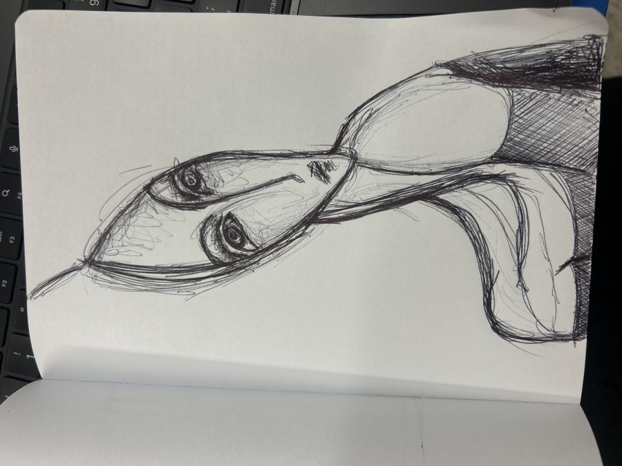 A moment of hesitation. She observes but stays still, caught between the urge to act and the fear of being exposed. A conscious pause between impulse and control.