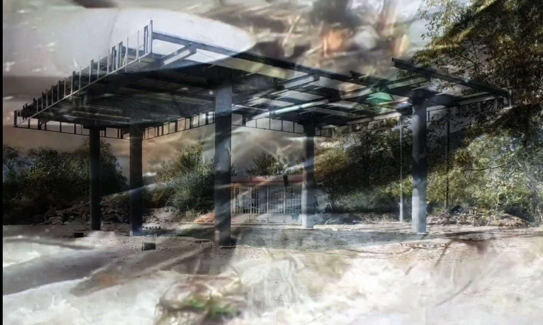 The installation is composed of three photographs taken by the artist during his wanderings around the city, banal urban landscape views: an abandoned industrial building and a disused petrol station captured by nature, and a warehouse occupied as a home. These residual images were printed on advertising banners and are "disturbed" by an overhead video projection. The videos are a montage of the artist's personal archive, which has been filming the floods of the Po and Dora rivers since 2018. Three observations of urban landscapes, a gaze accustomed to urban abandonment, and a reflection on the margin of human error in the environment. Water always reclaims its spaces and brings to light the artificial nature of things.