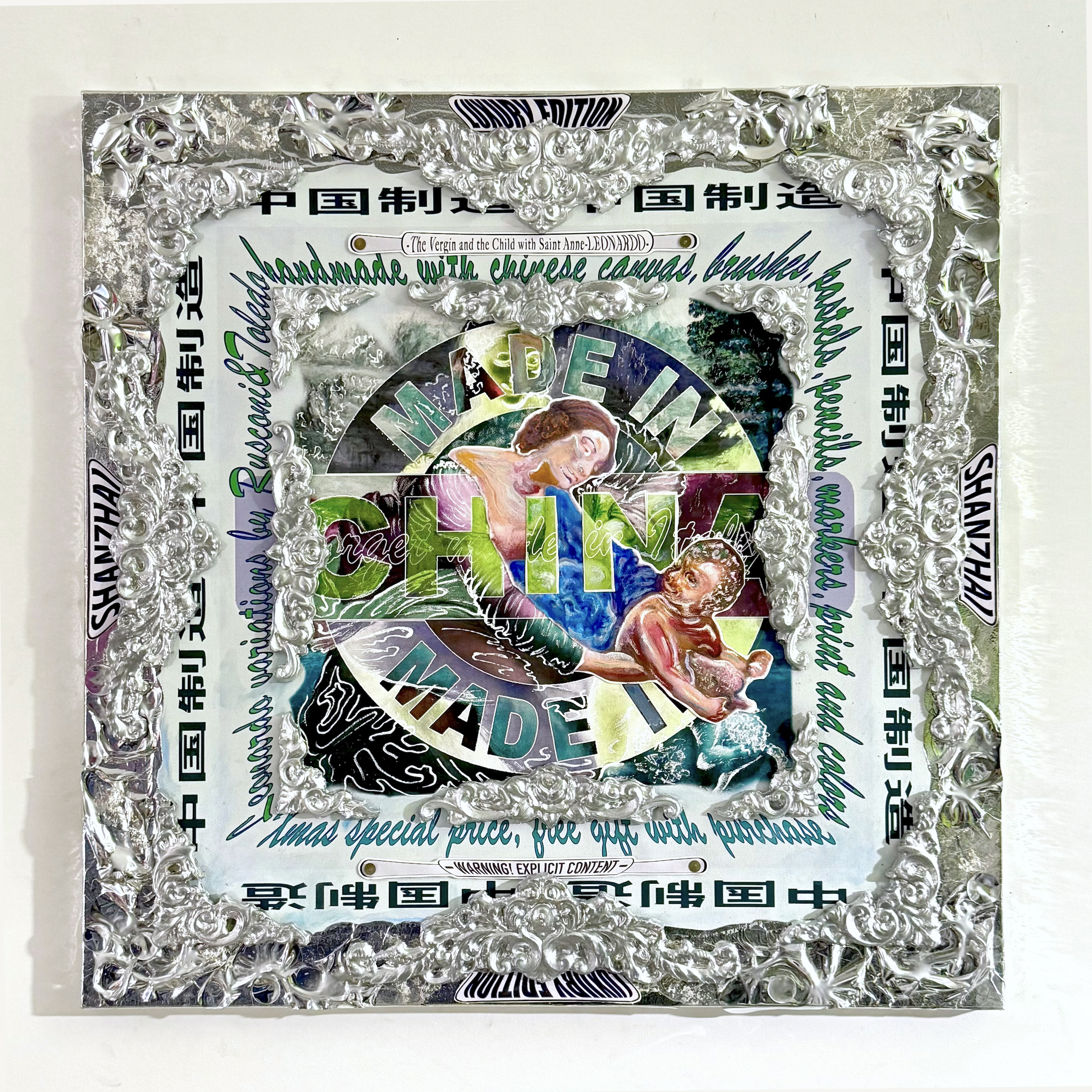 MADE IN CHINA is likewise an opportunity to reintroduce themes and subjects now obsolete, if not forgotten—perhaps simply out of fashion—such as sacred art, perhaps deemed inadequate, rejected and abandoned, once a cornerstone and foundation of Western figurative culture…