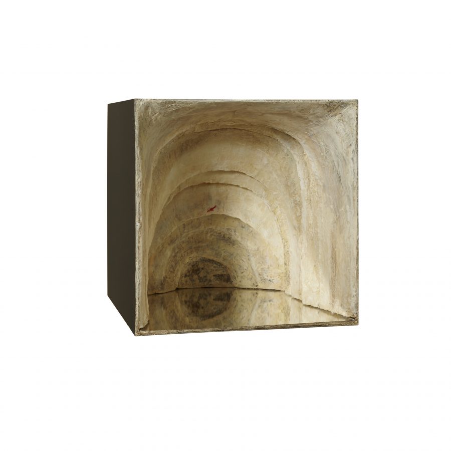 acrylic, watercolor, chalk and acrylic pastes on polystyrene and styrofoam,