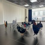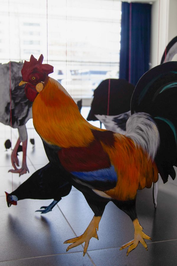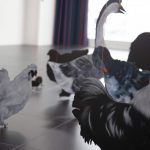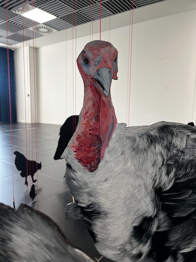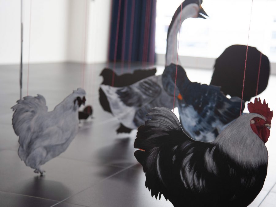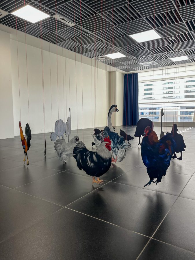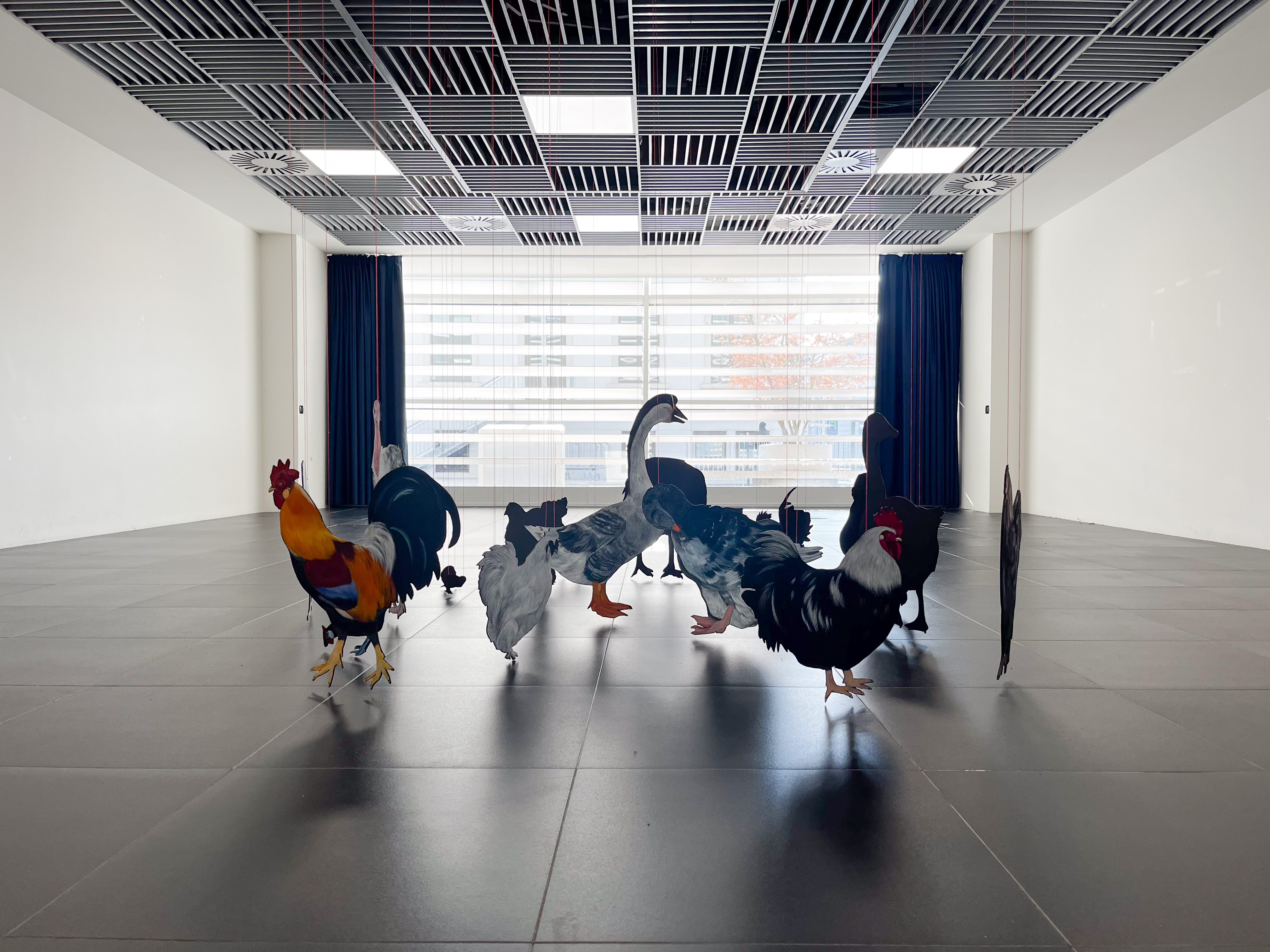 Questa è la mia aia is an installation that gives form to a desired yet nonexistent space, constructed through a process of care and dedication. The animal cut-outs, painted on wood and suspended just a few millimeters above the ground, define a suspended and unstable dimension, akin to that of a dream. The work unfolds as an imaginative projection in which sharply defined elements coexist with more elusive ones, shaping an intimate space between vision and reality.