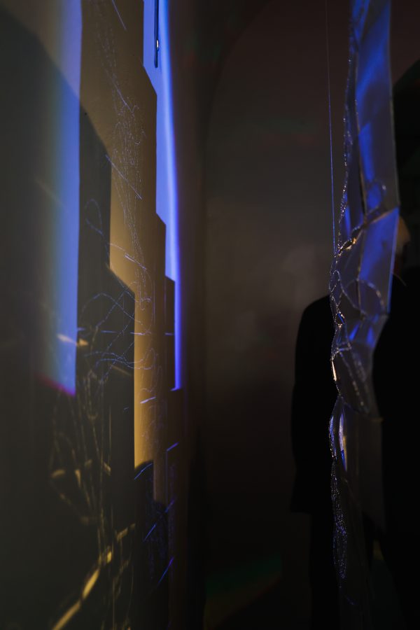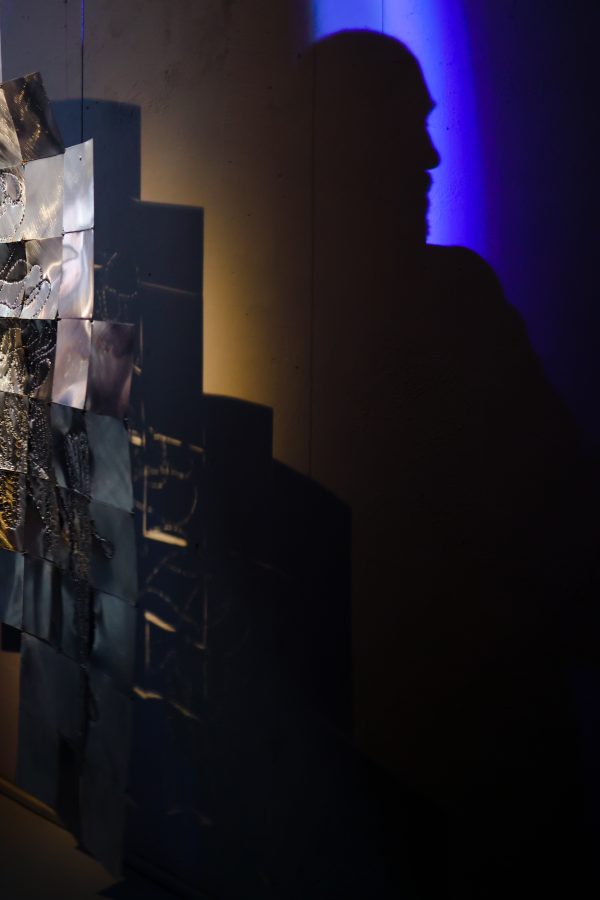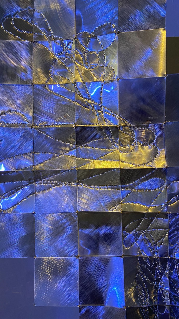 work Se fossi un punto in movimento category Installation subject Travels, Abstract tags base 104 cm height 180 cm depth 50 cm year 2023 Morse code engraving on 56 aluminum plates. 1 like 0 comments