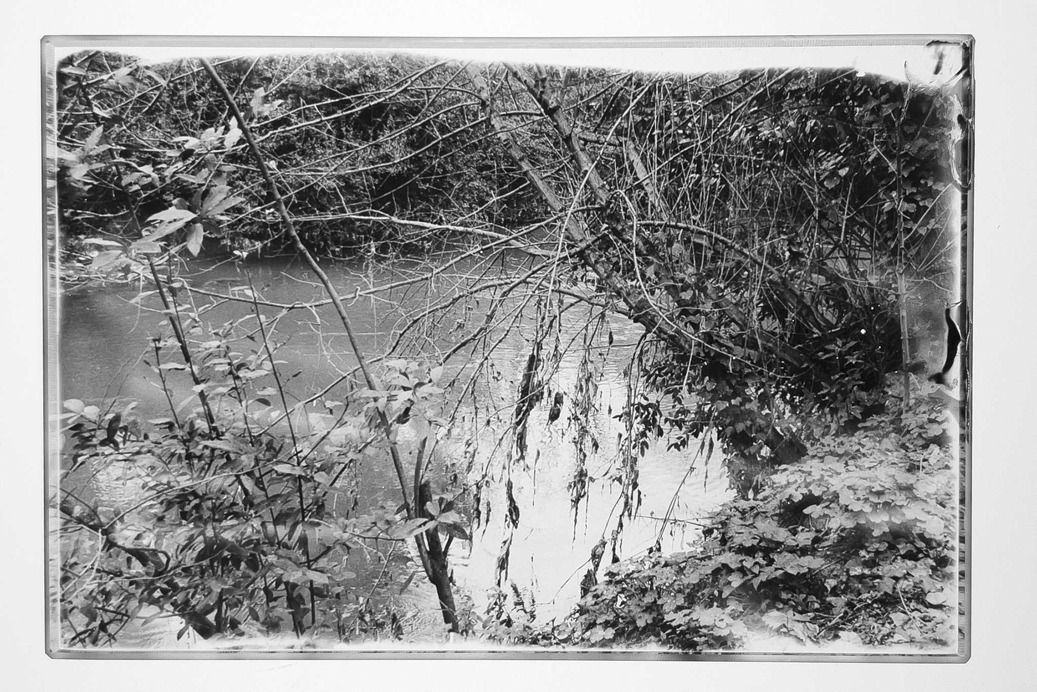 Manual printing if silver rises. Still water and tangled branches reflect a fragile balance. The image holds time like a silent threshold.