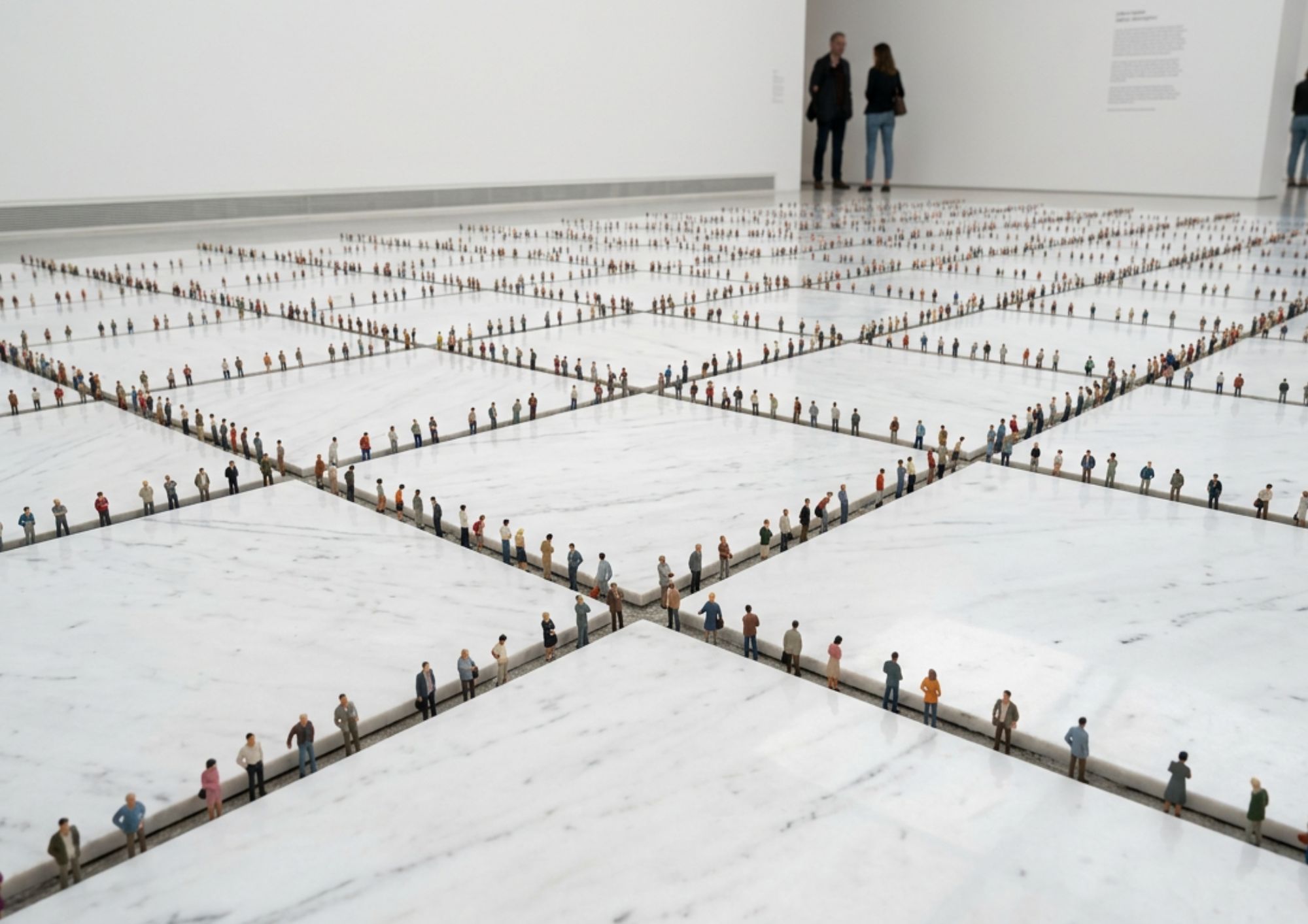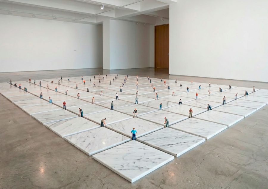 | tags | contemporary installation, conceptual art, marble tiles, human figurines, spatial politics, territory, borders, separation, control, minimalism, system-based art, critical practice |