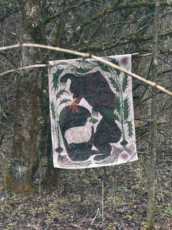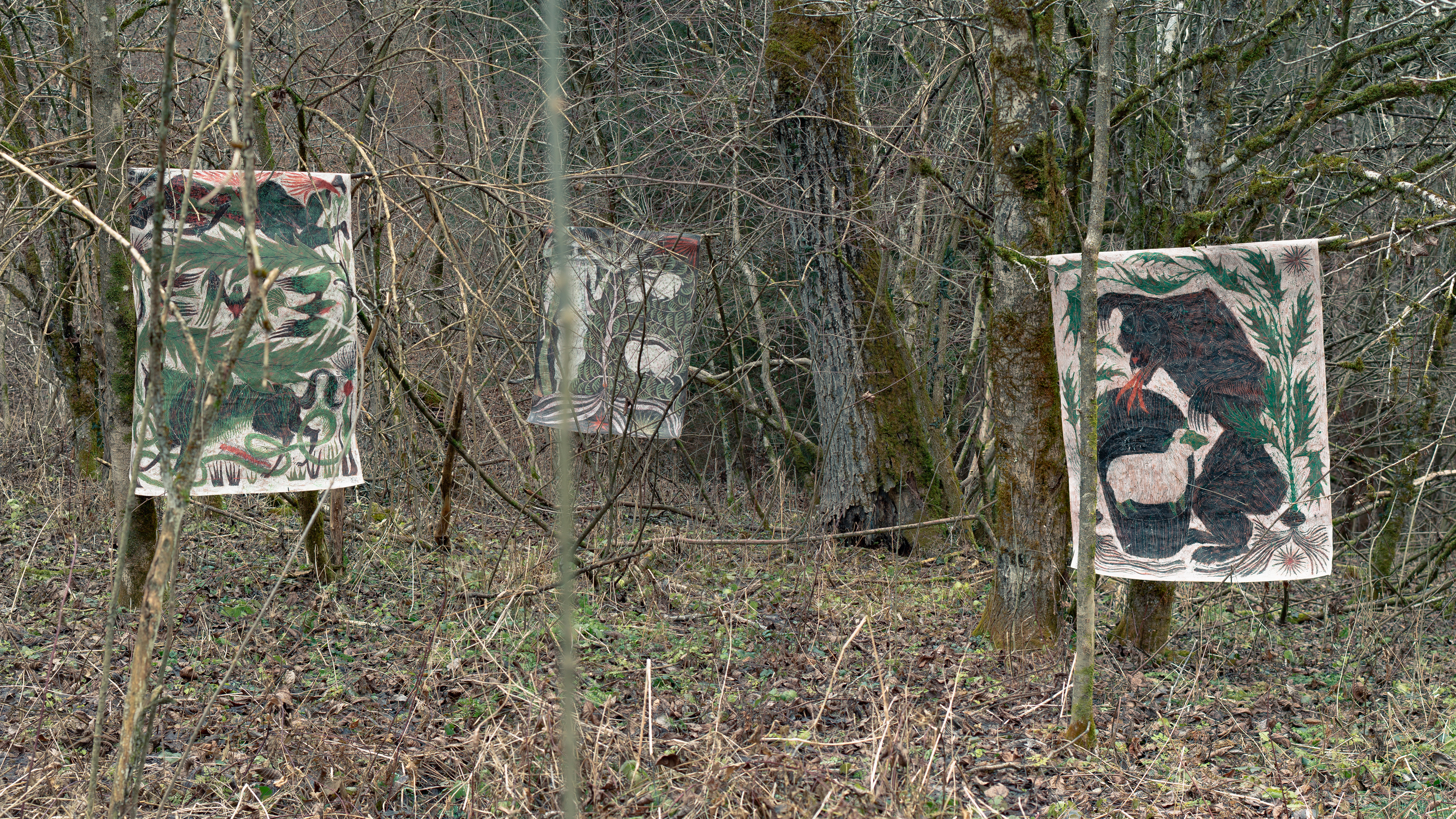 work Silva Obscura triptych category Painting subject Animal tags base 100 cm height 130 cm depth 0 cm year 2025 gesso, coffe, soil, tea leaves, pigments, acrylic dispersion on paper 0 likes 0 comments