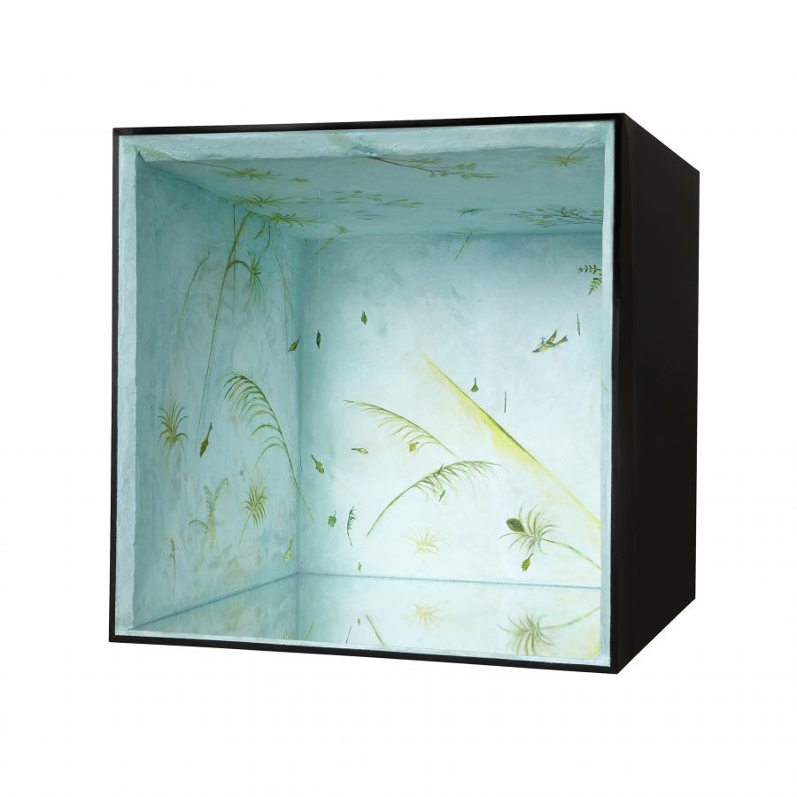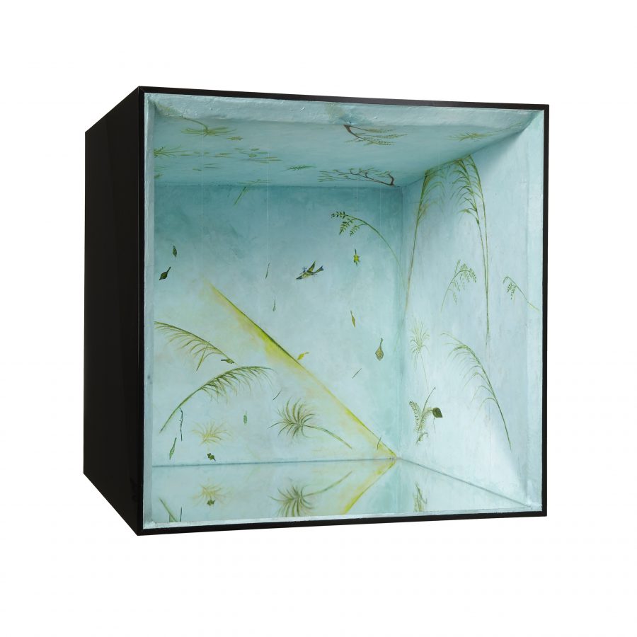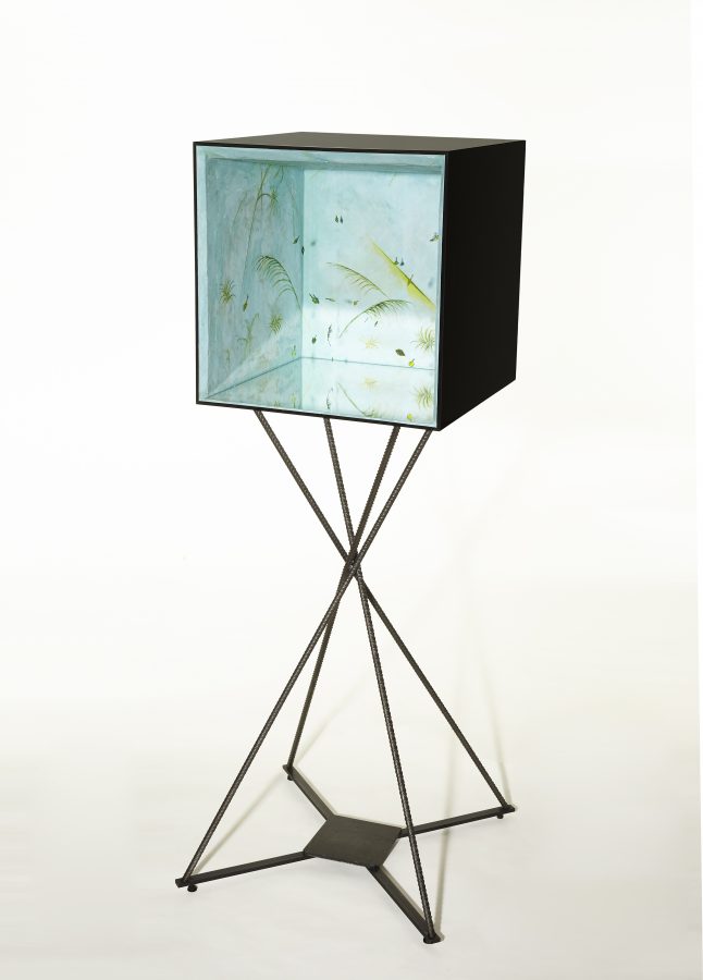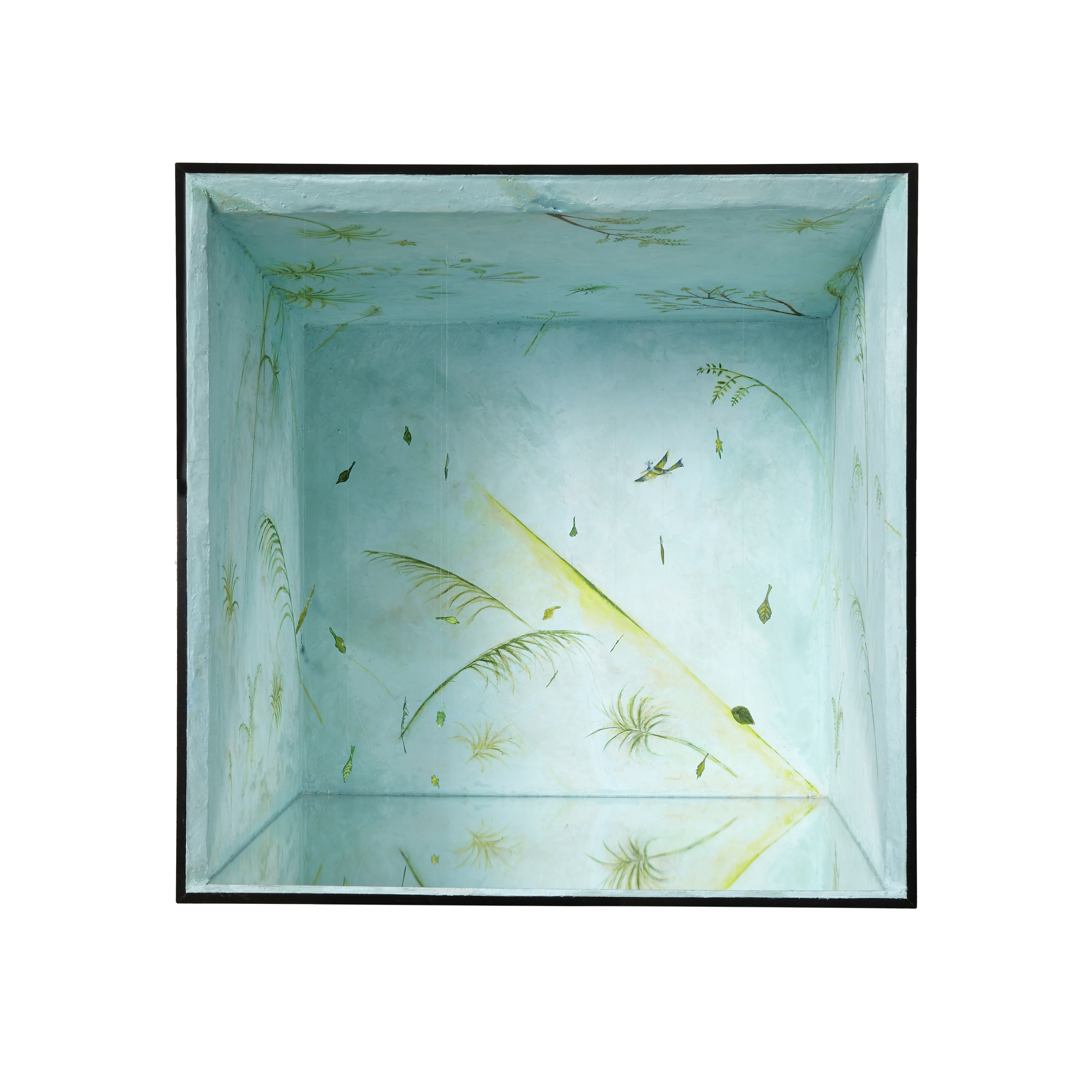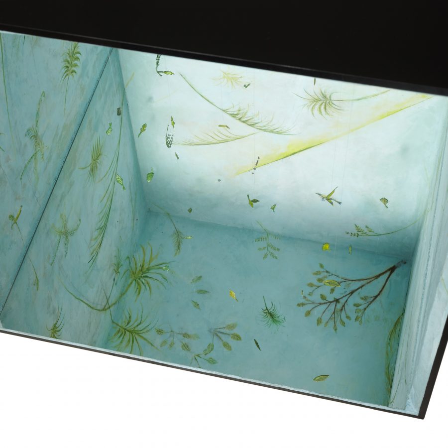 styrofoam, nylon thread, plexiglas, mirror