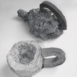 During the three-month residency, Marinoni produced a series of works encompassing sculptures and installations. Intertwining fabric and ceramics, she blends natural materials such as, cotton, linen, wood, and iron with organic elements familiar to the artist, such as wine and makeup. In addition, she enriched the artworks with a note of visceral intensity by incorporating plaster casts of bovine stomachs, thereby emphasizing the emotional depth of her sculptures.