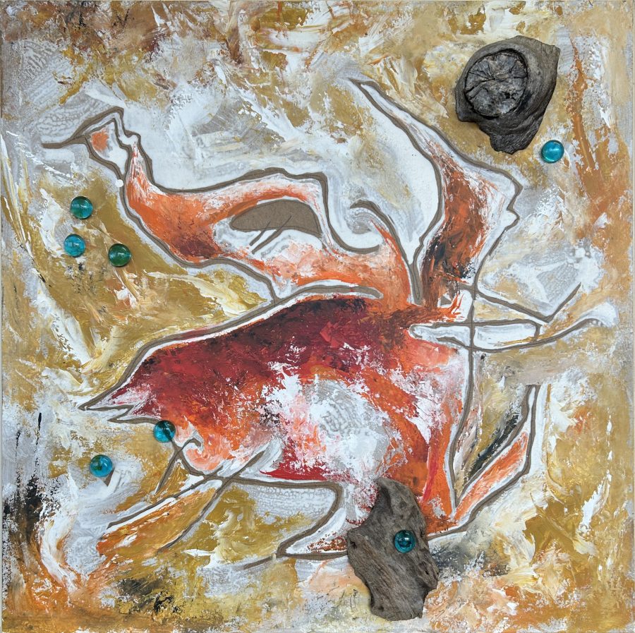 Acrylic on MDF with material inserts - polished glass, driftwood, collected elements