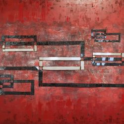 tags barriera, sfogo, gabbia, interiorità, mente umana, dualismo, tensione, cage, interiority, inside us, humans, human mind, tension, red, steel, oil, canvas, strength