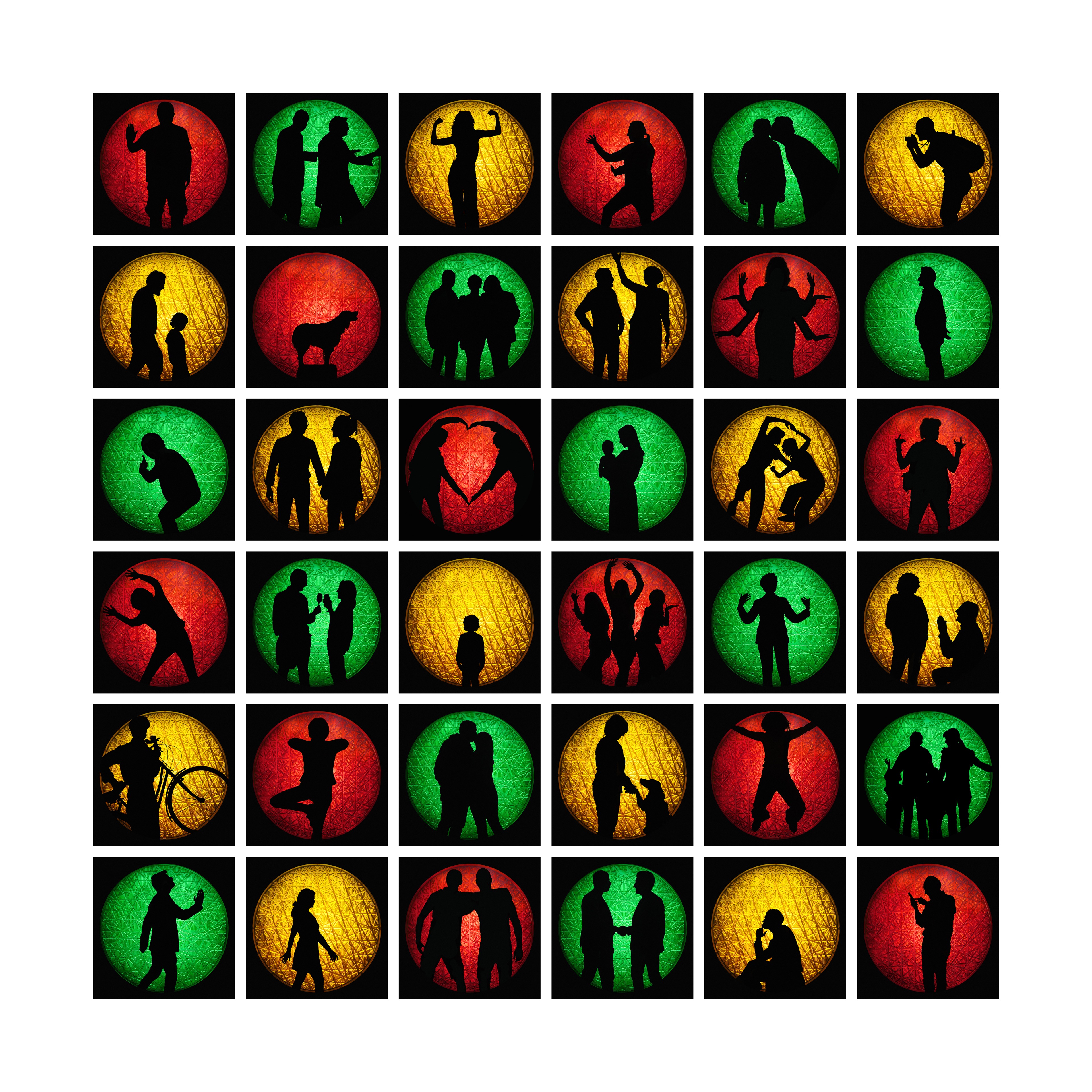 We Are Icons – Polyptych is a collection of thirty-six images selected from over one thousand two hundred photographs taken during the solo exhibition Traffic Lights – Universal Language, held at the Ex Fornace exhibition space in Milan in May 2025 Sponsored by the City of Milan – Municipality 6 and curated by Rosanna Accordino, the event celebrated the centennial of Italy’s first traffic light, installed in Milan's Piazza Duomo on April 1, 1925.