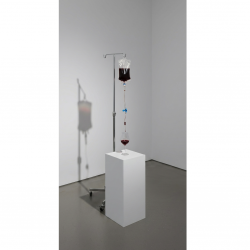 Si tratta di una bara per infanti che contiene 12 profilattici usati e annodati