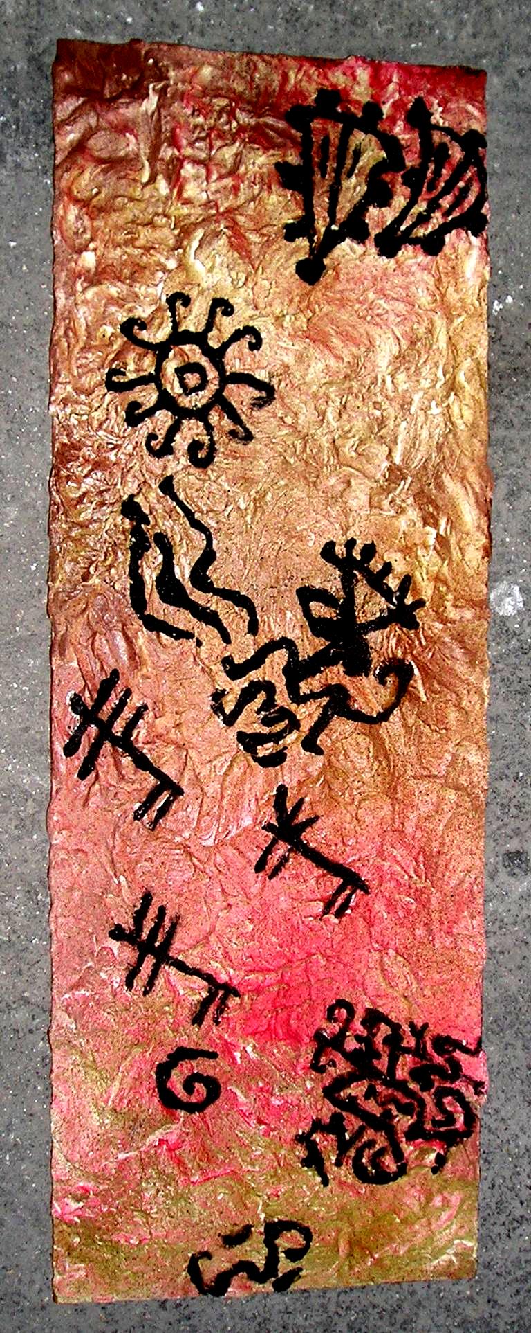 Tecnica mista su legno e gesso, aerografo, acrilico, polvere di metallo per immagini a rilievo
