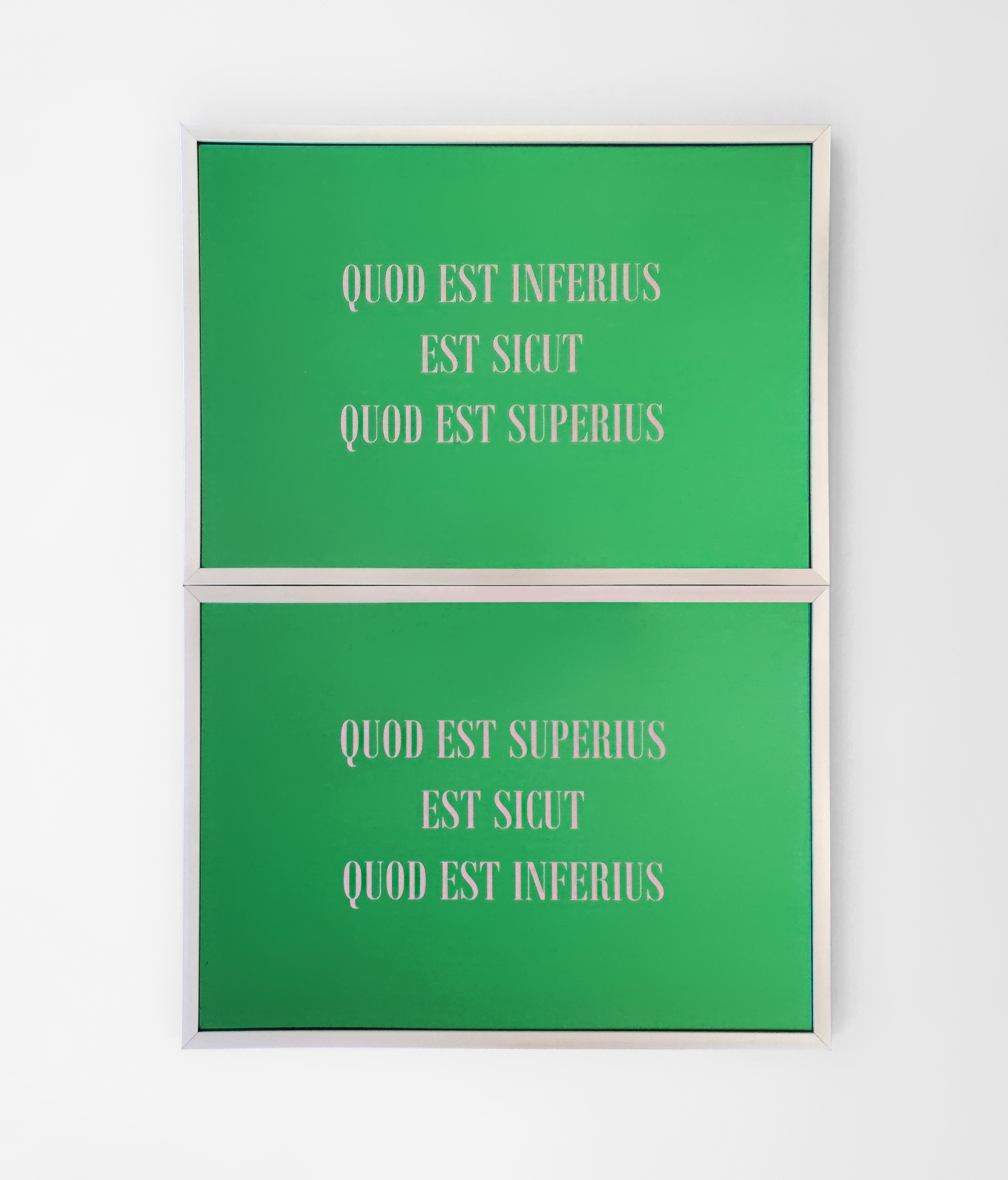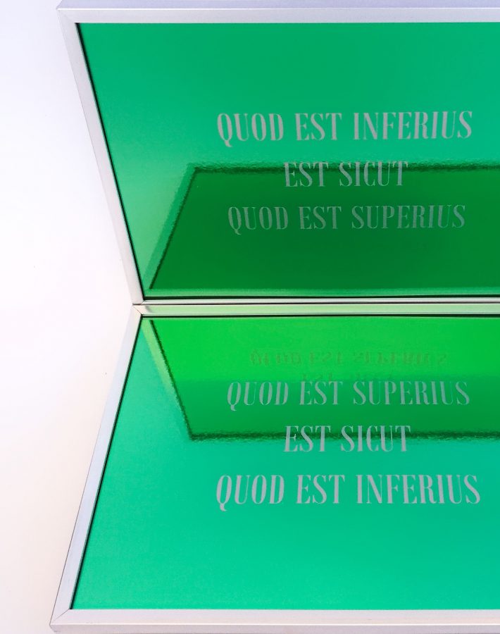 stampa in pvc su carta metallizzata specchiante incollata su acetato, cornici con vetro