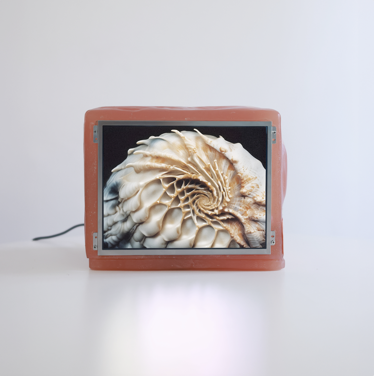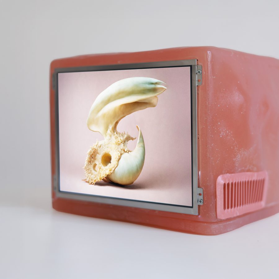 una futura era geologica. - AI-QUARIUM, 2025, resin hand printed TV with 2min video in loop, 28,4 x 22,5 x 22,3cm