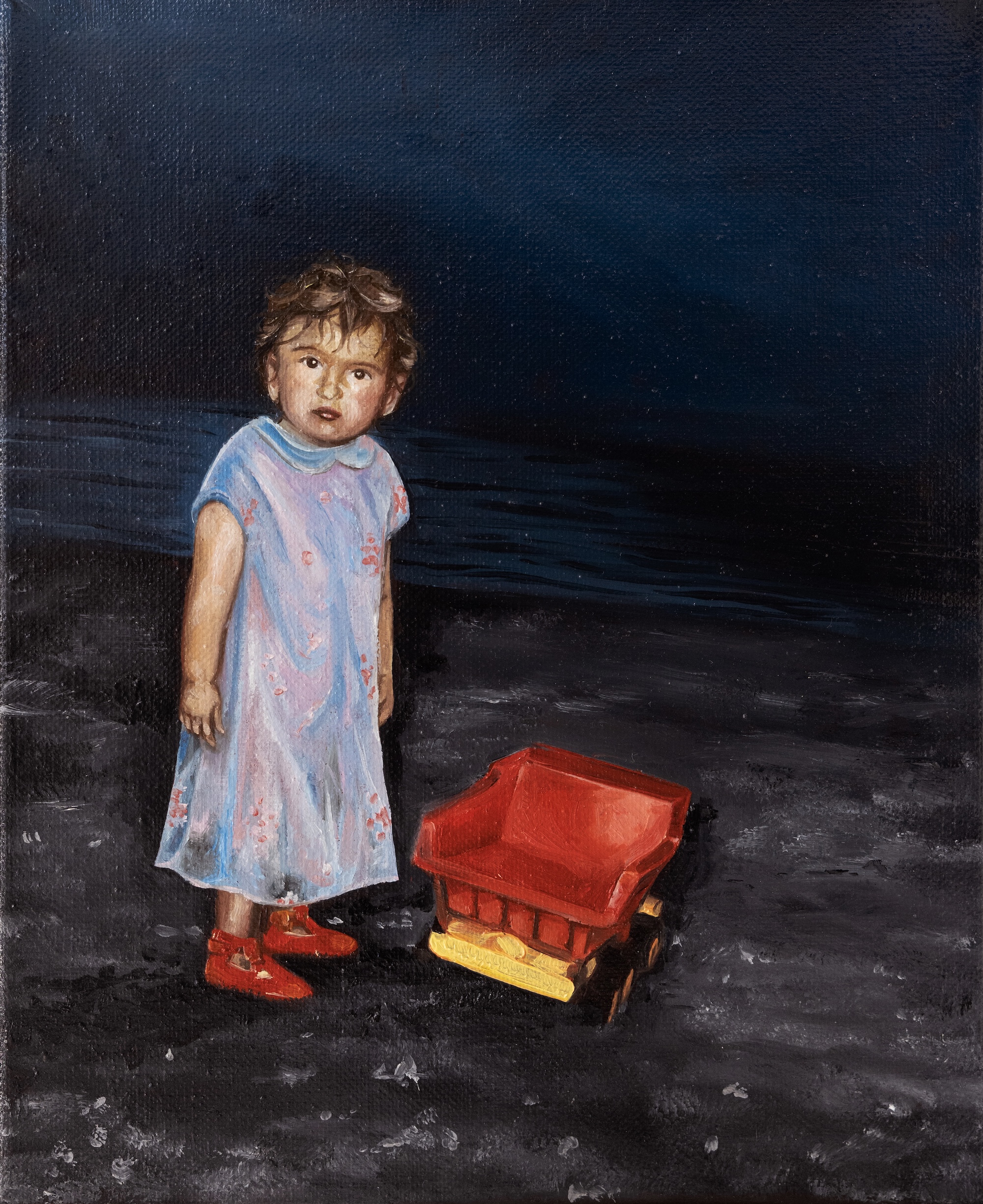 Olio su tela. Quest'opera è il risultato di lunghe ore trascorse con vecchie fotografie, cercando di trovare il filo che