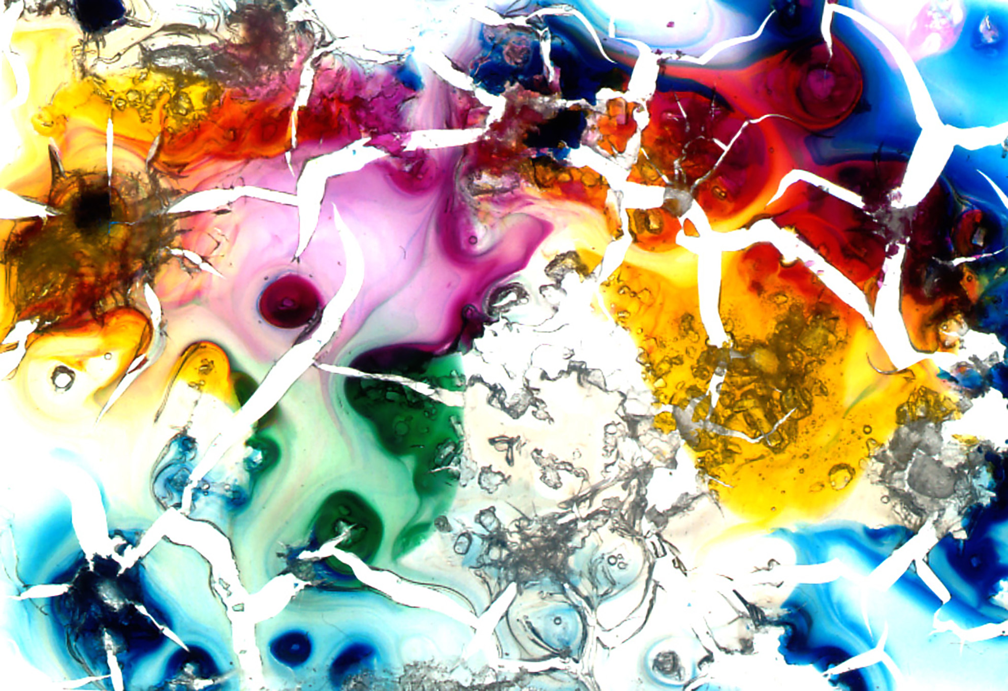 Tecnica: mista su micro pitture di frammenti organici e inorganici, acrilico e colle, fissati su rettangoli di acetato montati su telai per diapositive da 24×36 mm e successivamente post digitalizzati senza utilizzare AI nel processo digitale.