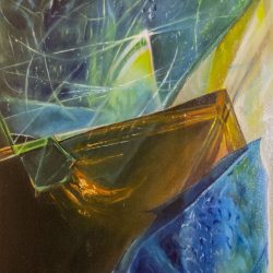 Acrilico su tela pluri-piegata montata su supporto di legno, forma e dimensioni irregolari.