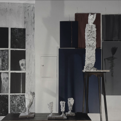 Il tema portante era centrato sul dialogo e sull’interazione tra arte e società, arte e ambiente, arte e impegno etico. Ho cosi realizzato una scultura in cui ho riutilizzato 33 lampade solari dismesse ancorate in modo tale da raffigurare linee di tensione che attraversano il corpo e lo spazio rappresentato da una struttura in ferro.
