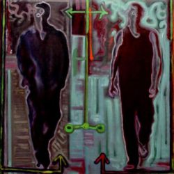 Il lavoro riporta due riprese successive del colore come due fotogrammi di vita adiacenti contaminati l'uno dall'altro eppur diversi.