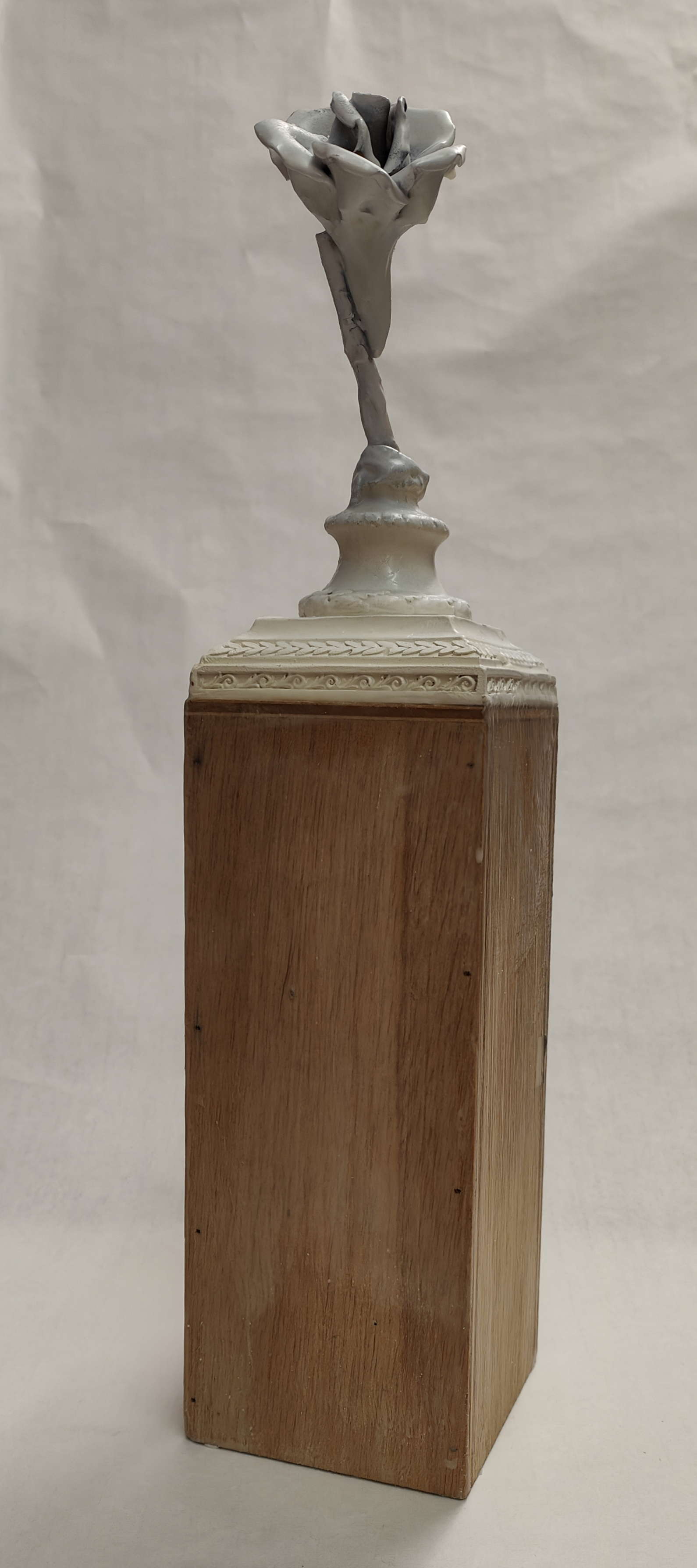 assemblaggio di oggetti usati, gesso,stucco e cera