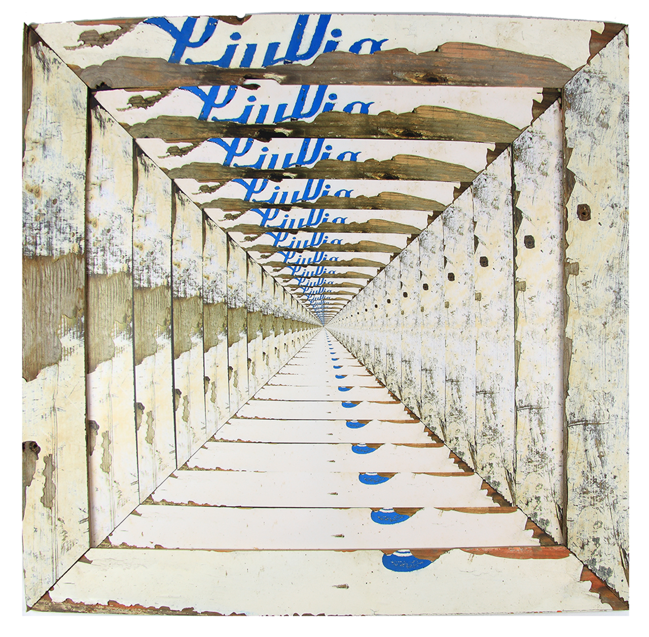 Opera della serie "Infinite sea woods". Le opere vengono realizzate utilizzando legni recuperati da imbarcazioni dismesse e lavorati artigianalmente per creare una cornice che, attraverso una riproduzione in studio fotografico seguita da un'elaborazione digitale, porta alla creazione di un'immagine fotografica che si ripete all'interno della stessa cornice all'infinito: un'opera che coniuga materia e fotografia.