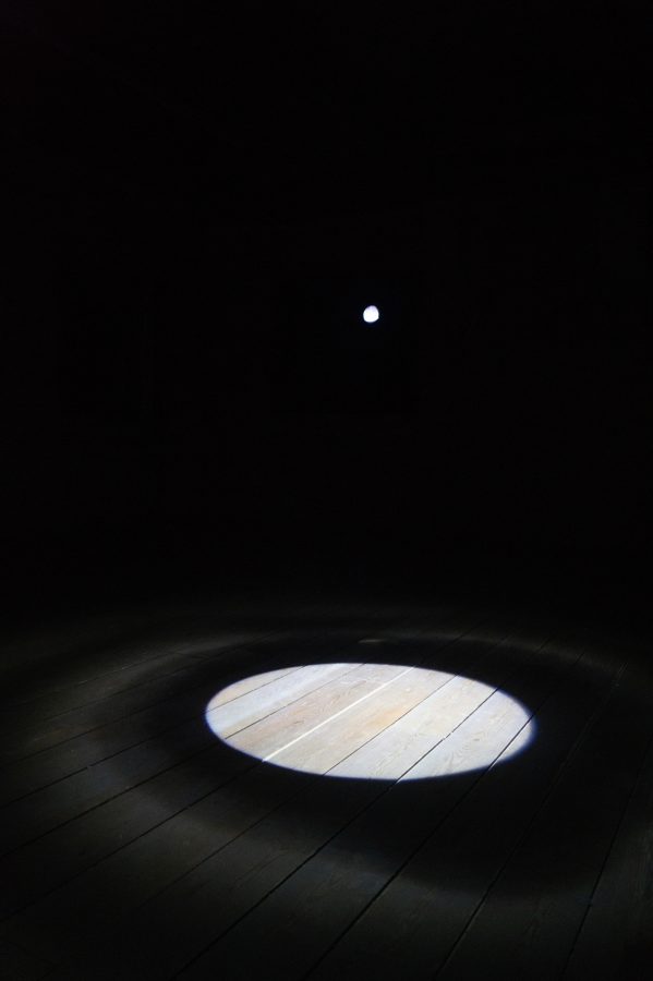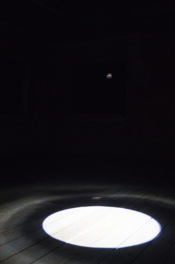 I 4 elementi utilizzati sono la luce, il buio, il legno e il vetro. Elementi tra loro opposti.