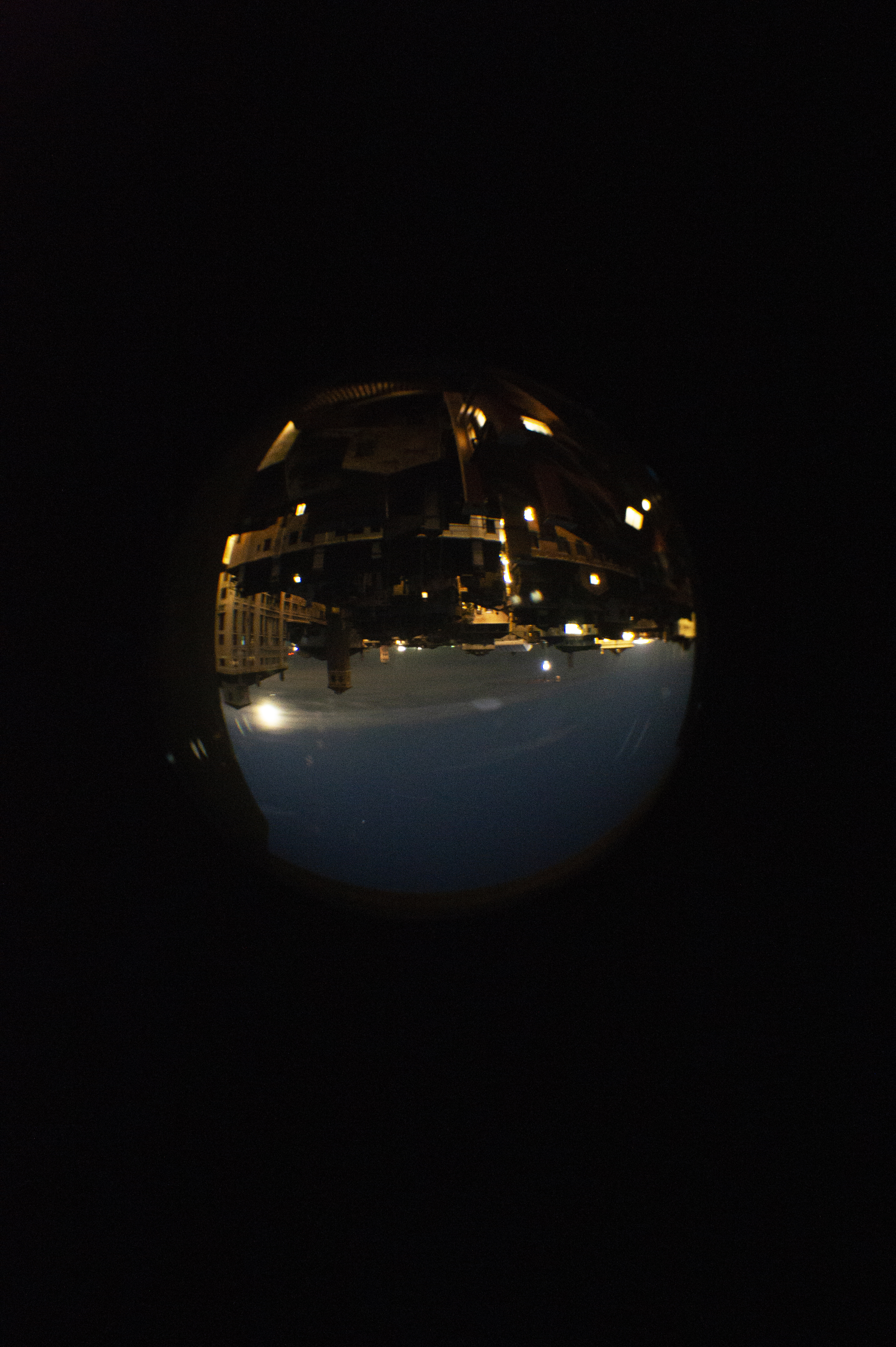 L’opera riflette l’aspetto interiore ed esteriore. A luce spenta vediamo un ribaltamento del paesaggio esterno attraverso la sfera in vetro posta vicino alla finestra. A luce accesa notiamo invece il nostro corpo all’interno di una stanza grazie al riflesso nella sfera stessa.