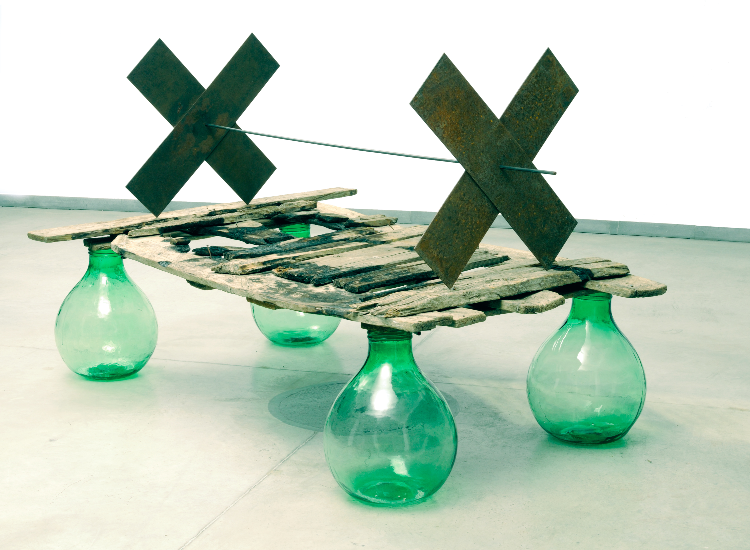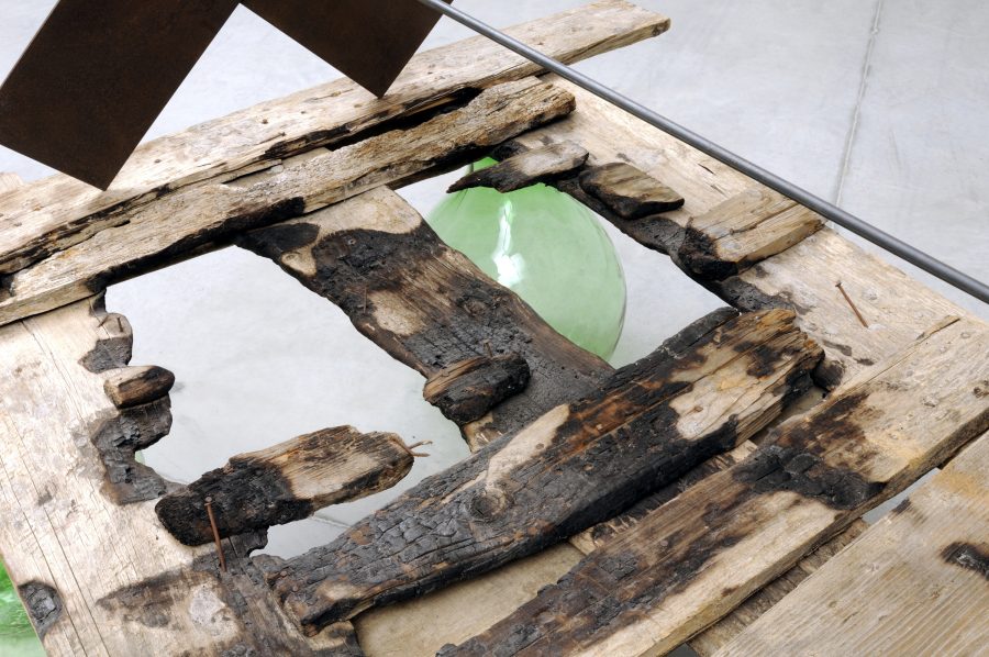 scultura in ferro, legno, vetro