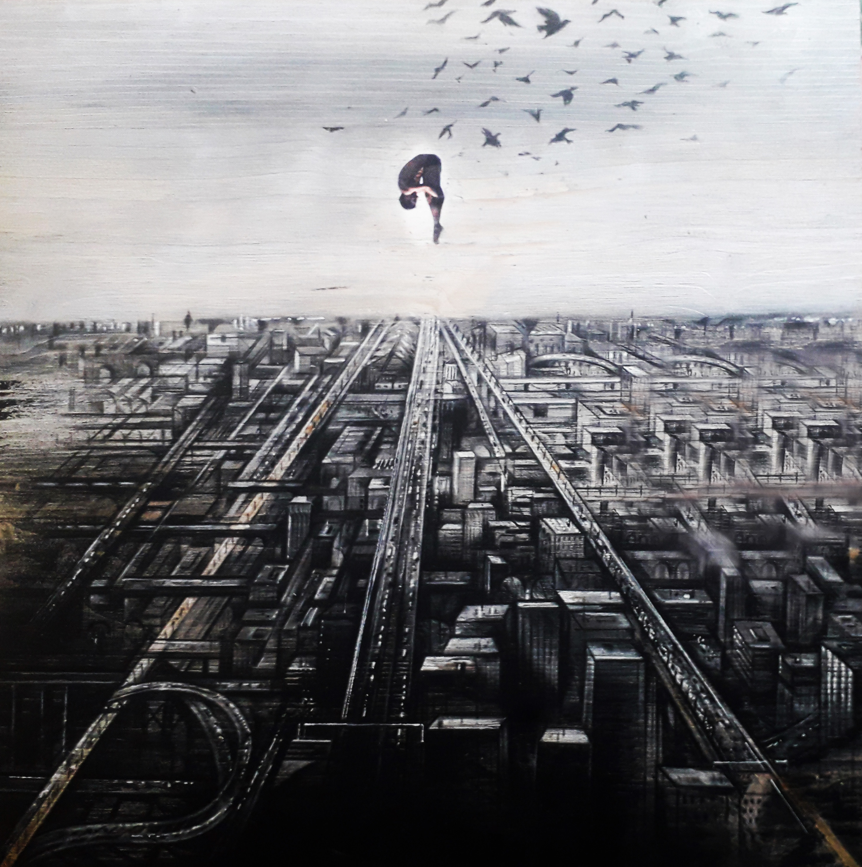 Tavola, tecnica mista ( bitume, cera, pastello, grafite, gesso, acrilico, olio, carta ), pezzo unico, serie ''Case e case''.