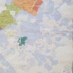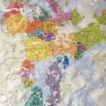 Il foglio è pressato tra due lastre di plexiglas così da poter vedere entrambi i lati; la prima faccia che si presenta è il retro del foglio; la cartina è volutamente al contrario.