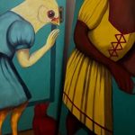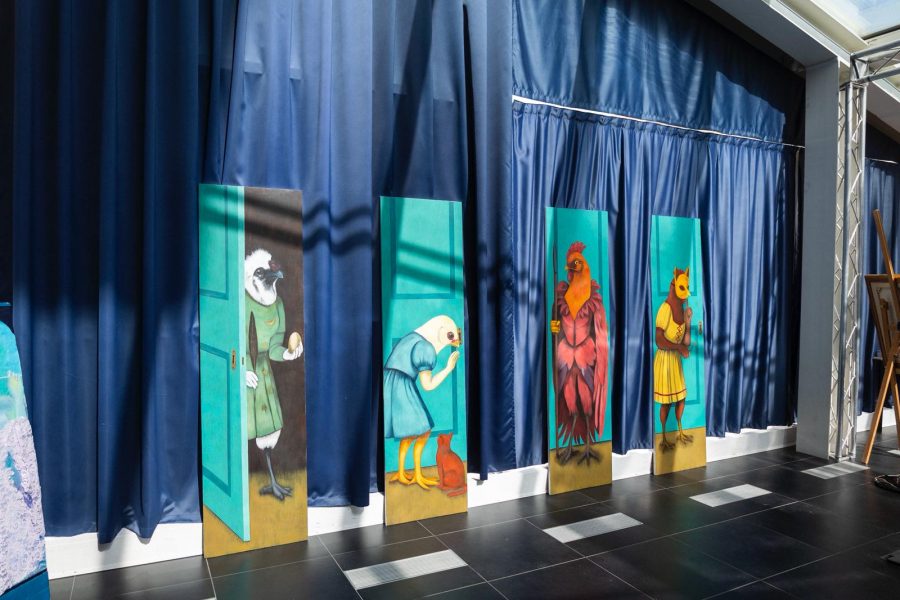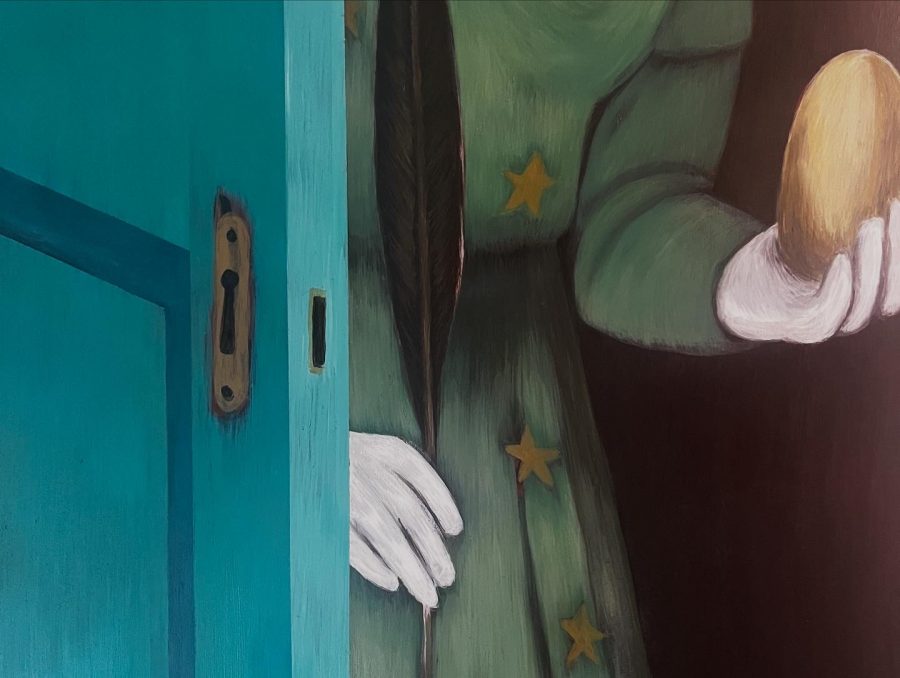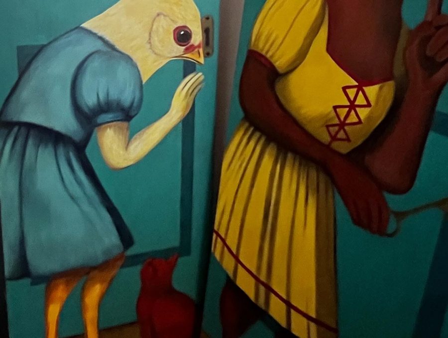 L’opera è realizzata su quattro ante originali di un vecchio armadio, trasformate in porte dipinte con tempera al rosso d'uovo: soglie simboliche che si aprono su un bestiario femminile e visionario. Ogni pannello è abitato da una gallina antropomorfa che incarna un gesto e una qualità del femminile: il desiderio curioso, la forza vigile, la trasgressione silenziosa, la sapienza generativa. Il pollaio, ricorrente nella mia ricerca, è inteso come microcosmo matriarcale e resistente, spazio in cui si custodisce, si veglia, si covano possibilità. L’installazione ideale prevede i pannelli sospesi, con il retro grezzo rivolto verso lo spettatore: porte che mostrano ciò che di solito resta nascosto. Una soglia tra la realtà e il mio immaginario.