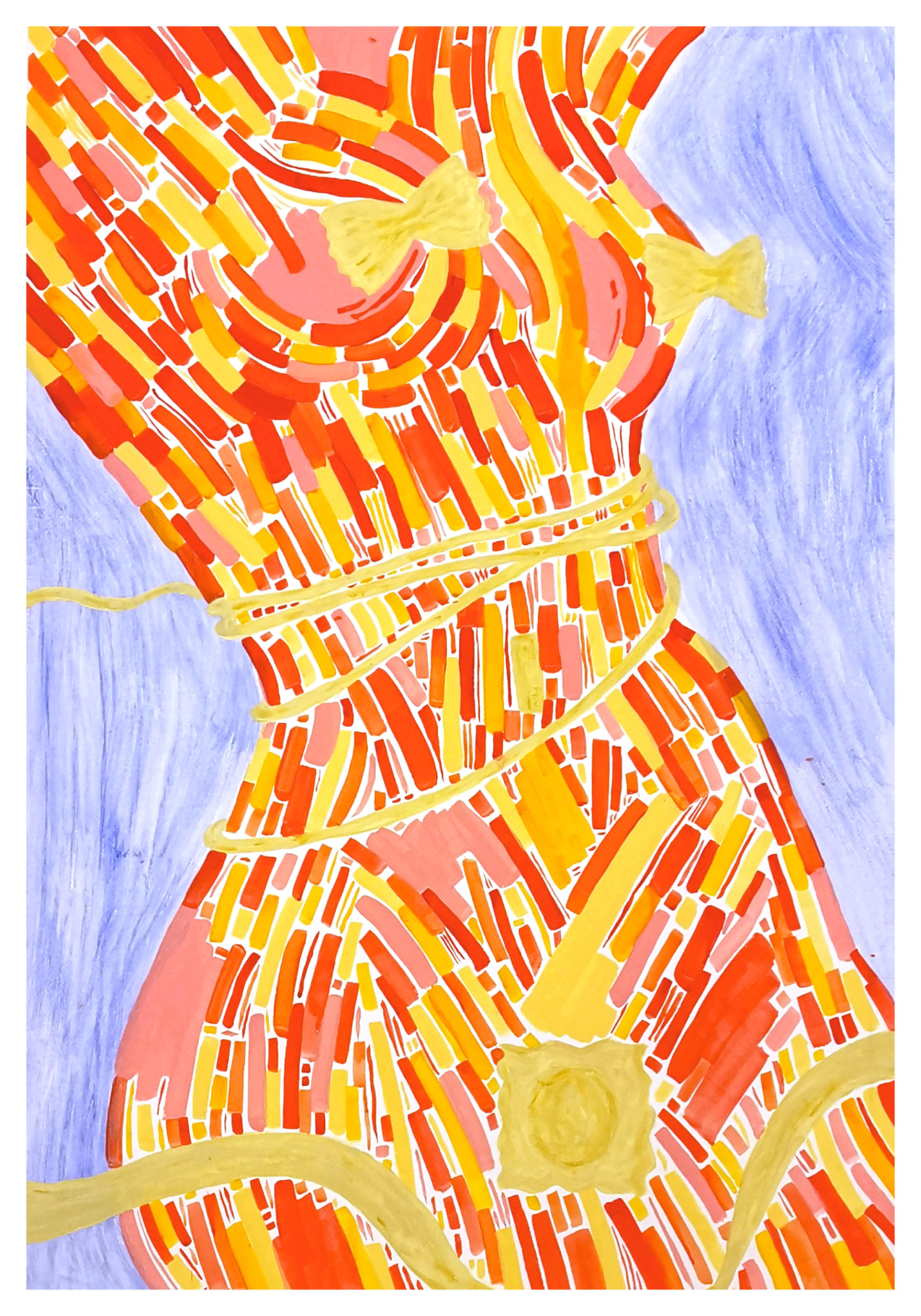 Questo dittico è composto da due opere realizzate in acrilico su carta. Le Veneri sono qui rappresentate frammentate, simbolo della precarietà del nostro presente e auspicio affinché le nostre fragilità emergano, permettendoci di essere, finalmente, autentici.