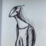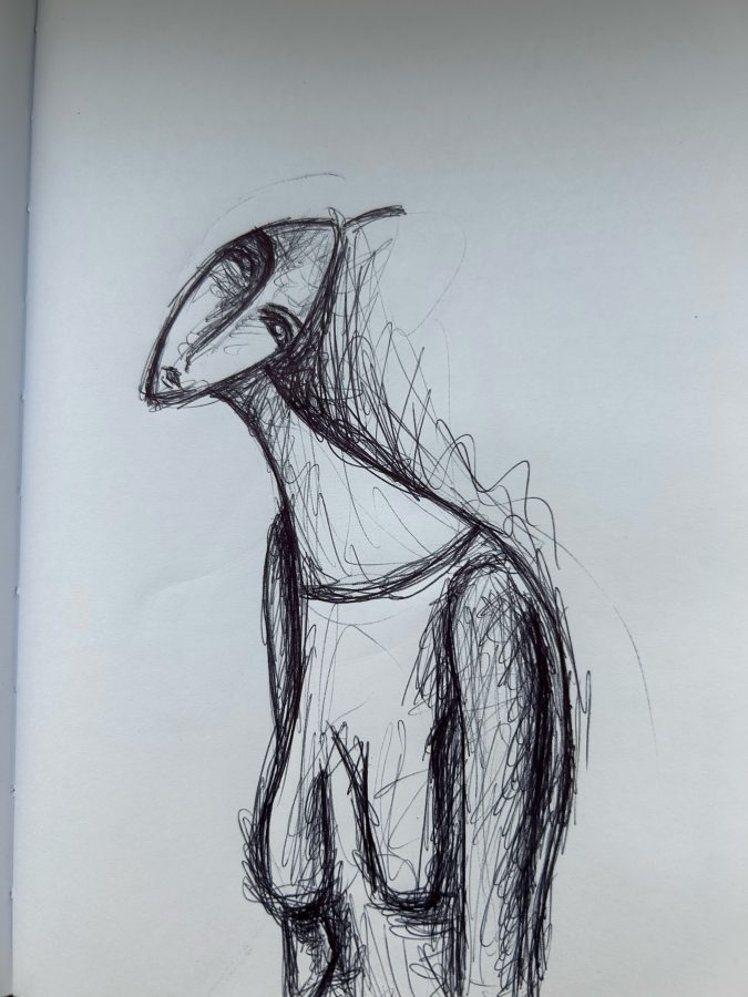 La figura prende forma nel digitale attraverso linee pulite e campiture essenziali. Il corpo inclinato crea una tensione controllata, un equilibrio silenzioso che trattiene l’emozione. Il volto laterale e il contrasto cromatico costruiscono una presenza raccolta, sospesa tra fragilità e rigore.
