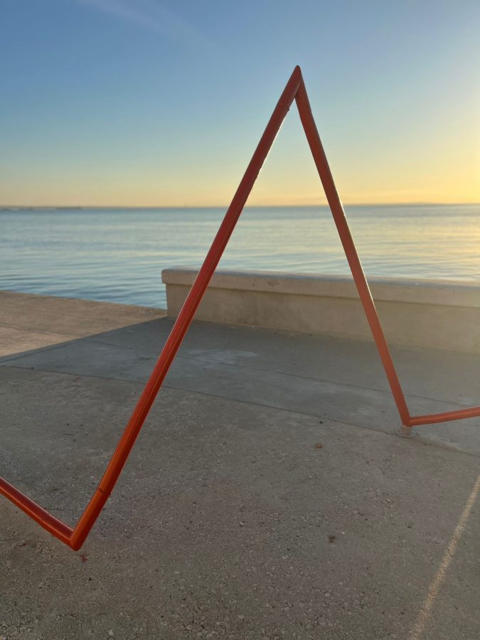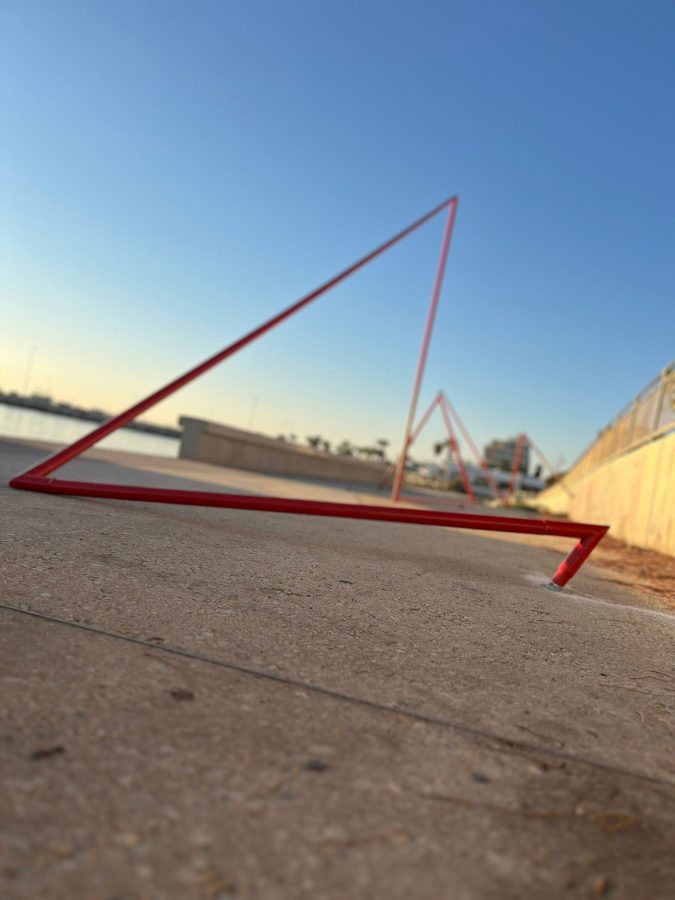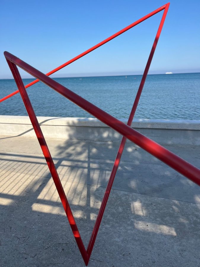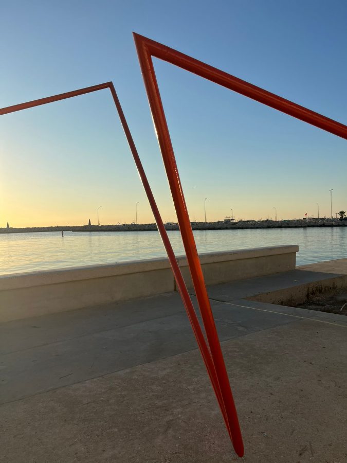 Attraverso il mezzo scultoreo da lui scelto, Igor Grigoletto tesse un fil rouge, un filo rosso, attraverso il tessuto della nostra esperienza umana condivisa. L’artista riesce ad infondere nelle sue installazioni site-specific una semplificazione delle intricate complessità dell'esistenza attraverso un’armonia che viene dal profondo delle emozioni. Con ogni scultura, Grigoletto ricrea frammenti di un alfabeto in continua evoluzione, invitando gli spettatori a dare la propria interpretazione e ad intraprendere un viaggio alla scoperta di sé. L opera che è stata selezionata e presentata alla Biennale di Larnaca verrà installata in modo permanente sul lungomare di Larnaca, Cipro. Ferro smaltato RAL 2002