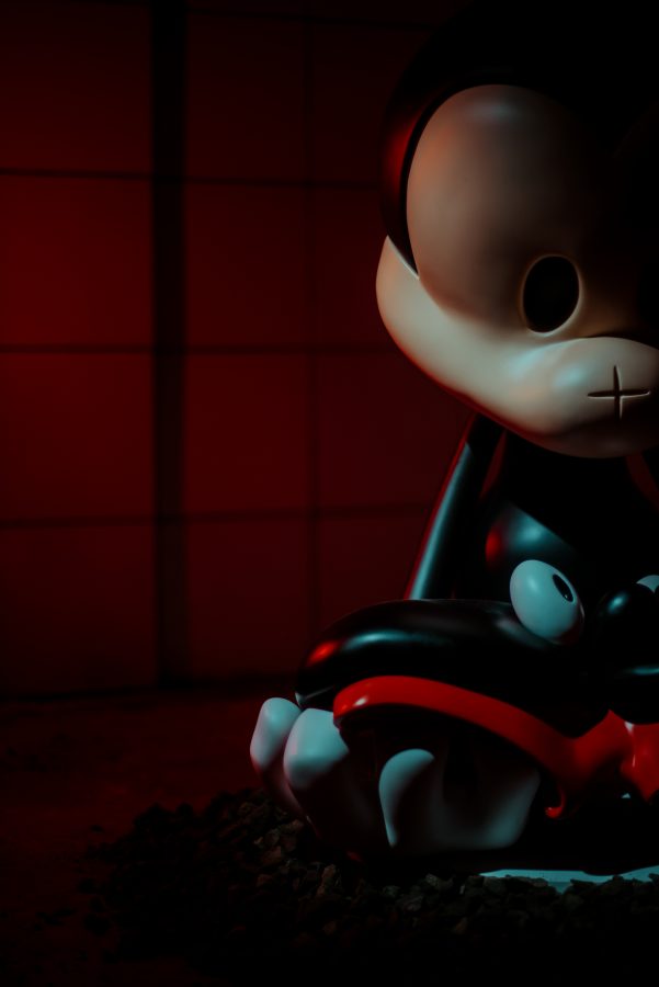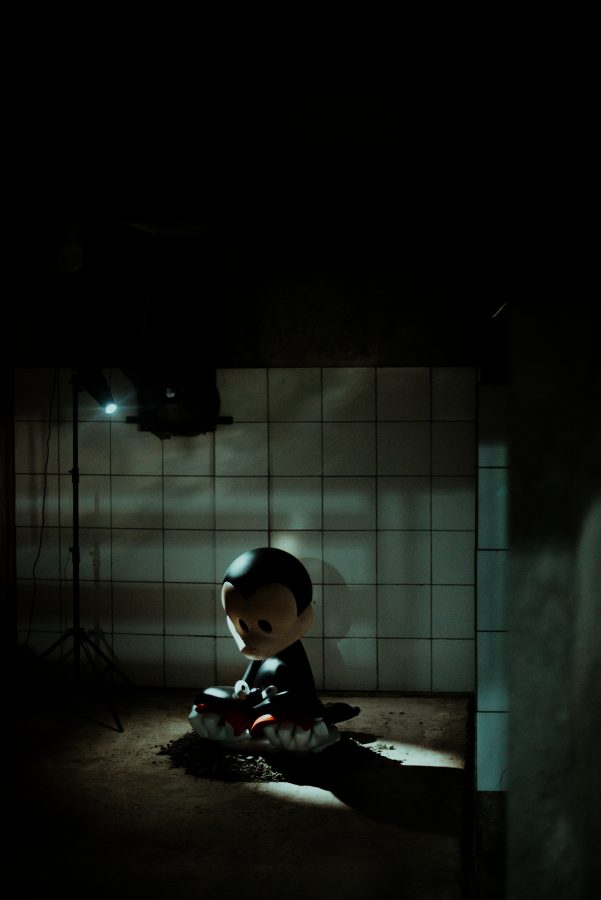 Come un moderno San Francesco, il protagonista di 'Light Off Mouse' si spoglia di tutto ciò che lo rende una star in una società ossessionata dalle apparenze. - 15 pezzi - resina
