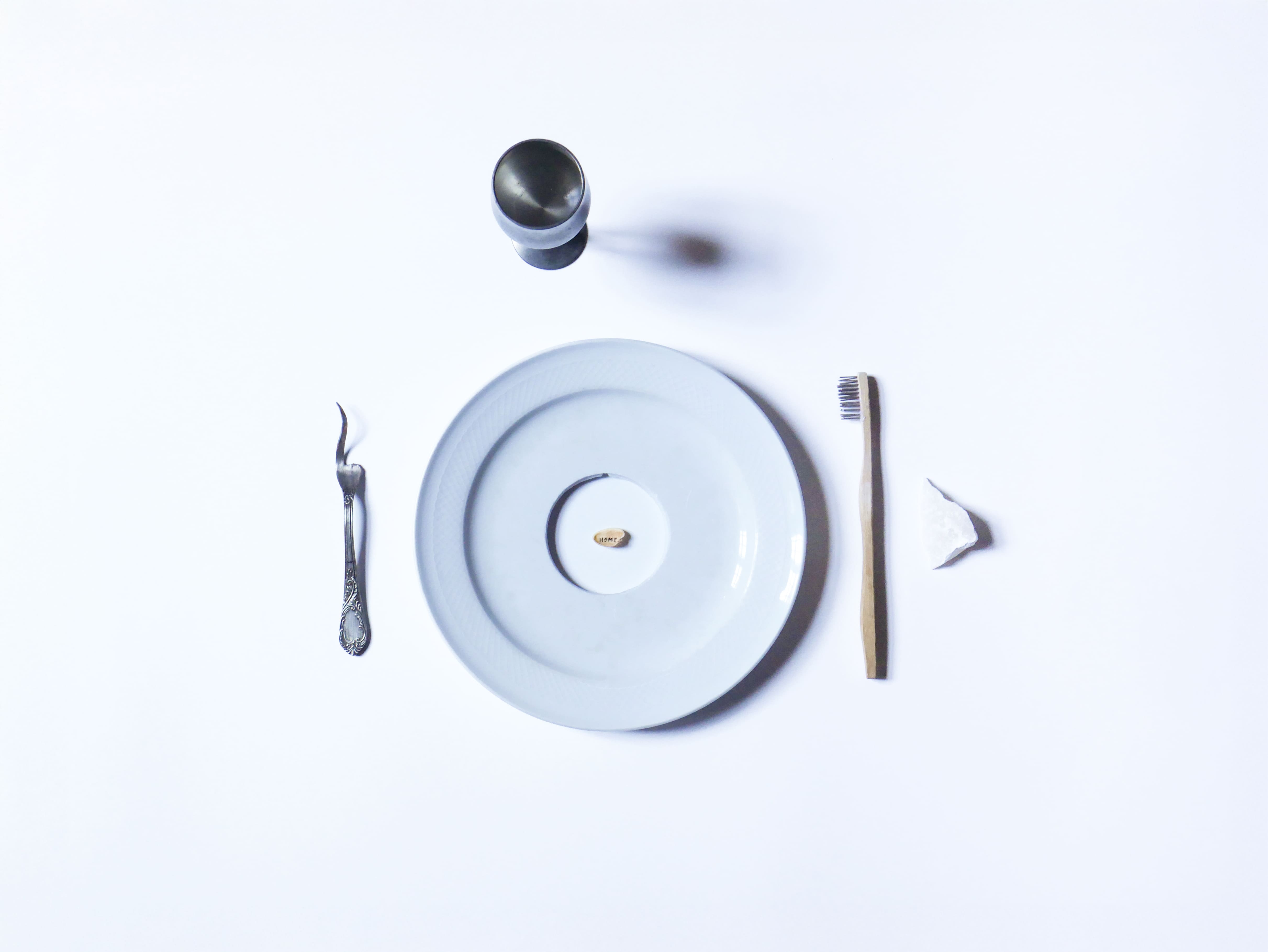 La tavola da luogo domestico a spazio di consapevolezza: piatti, forchette e tovaglie smettono di servire e iniziano a raccontare. Oggetti come un calice, uno spazzolino, o un tovagliolo in pietra diventano veicoli per una riflessione sull’atto stesso del nutrirsi—non solo di cibo, ma di cultura, di pensiero, di parola.