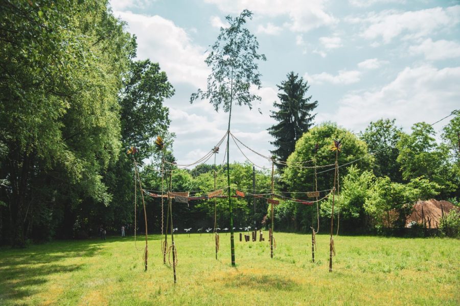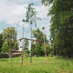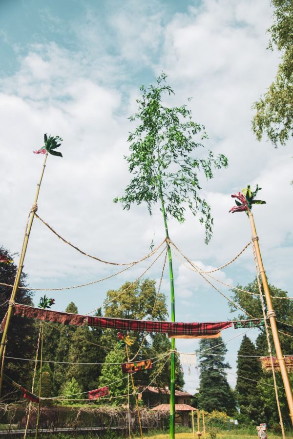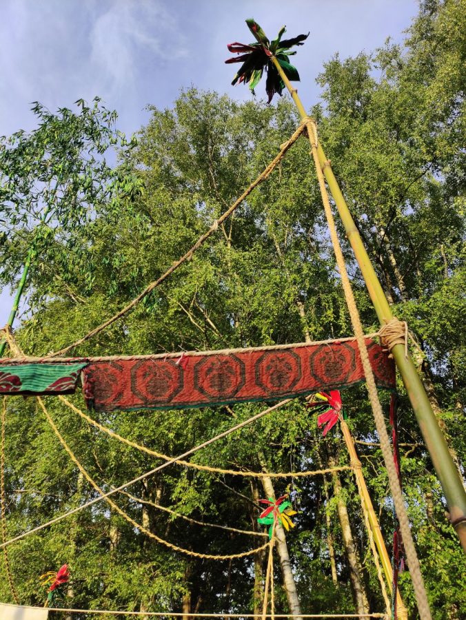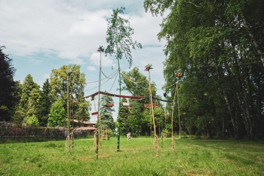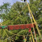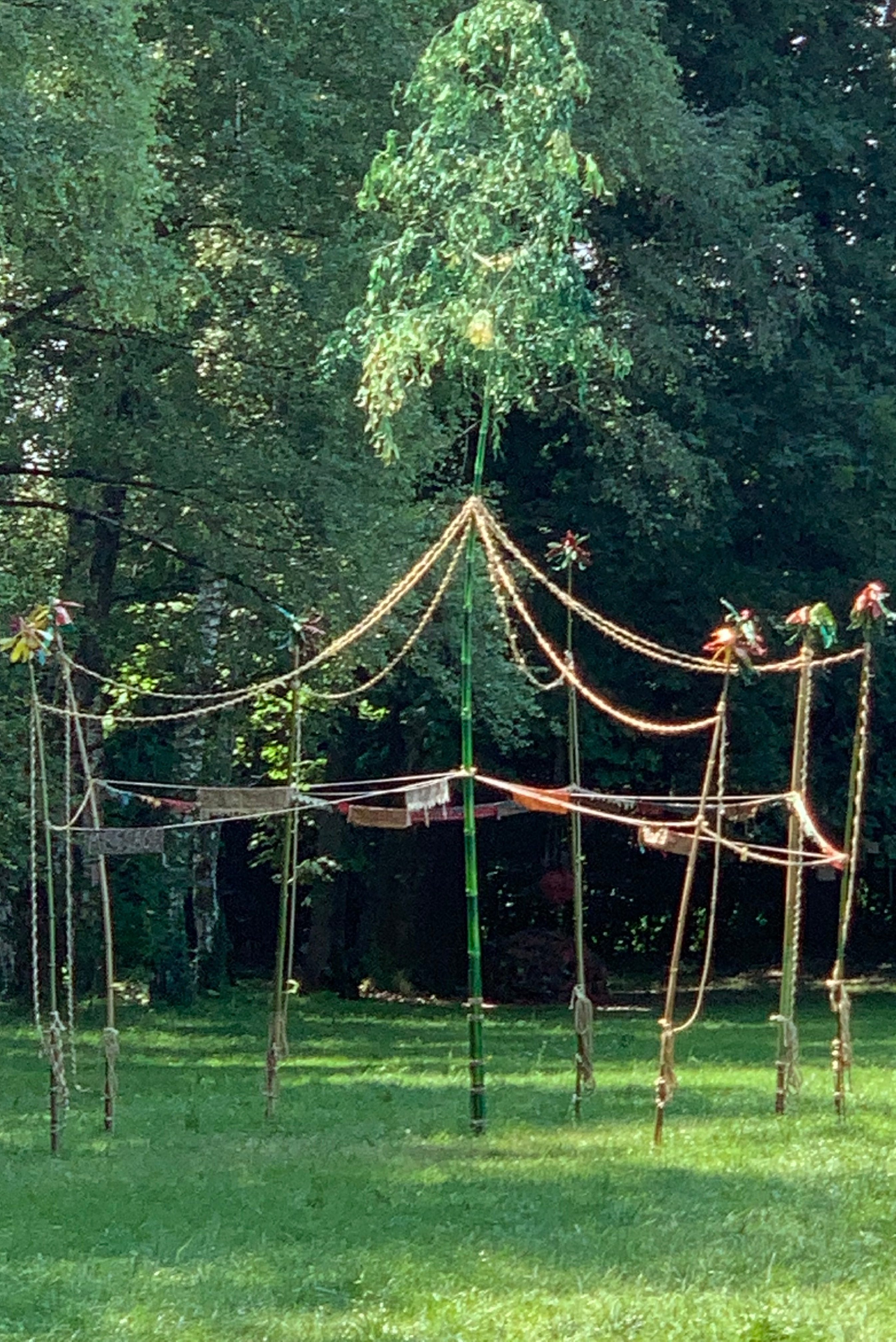 canne di bambù, spago corda,, tessuti, smalto sintetico, ferro